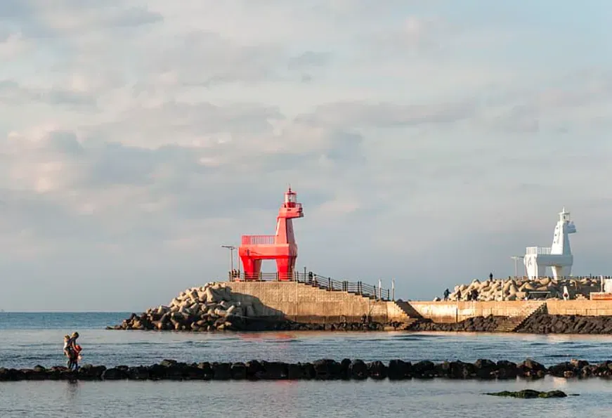 In the past, Jeju island's horses were bred and exported to mainland Korea and beyond, so they have become a symbol. A red and a white lighthouse representing the Jeju pony were built in Iho Tewoo beach, near Jeju City and the Jeju International Airport to represent this. The lighthouses go well with the ocean in the background and is a popular tourist area, and became Iho’s landmark (from VisitJeju).