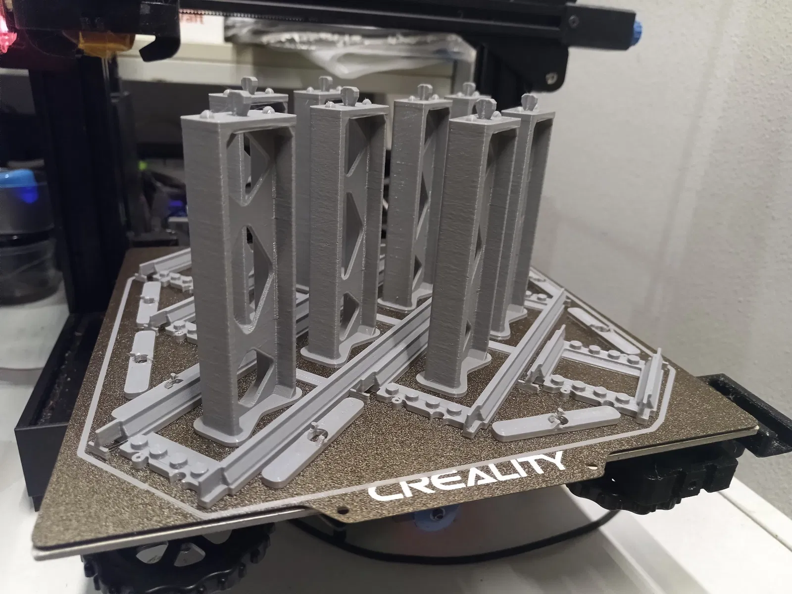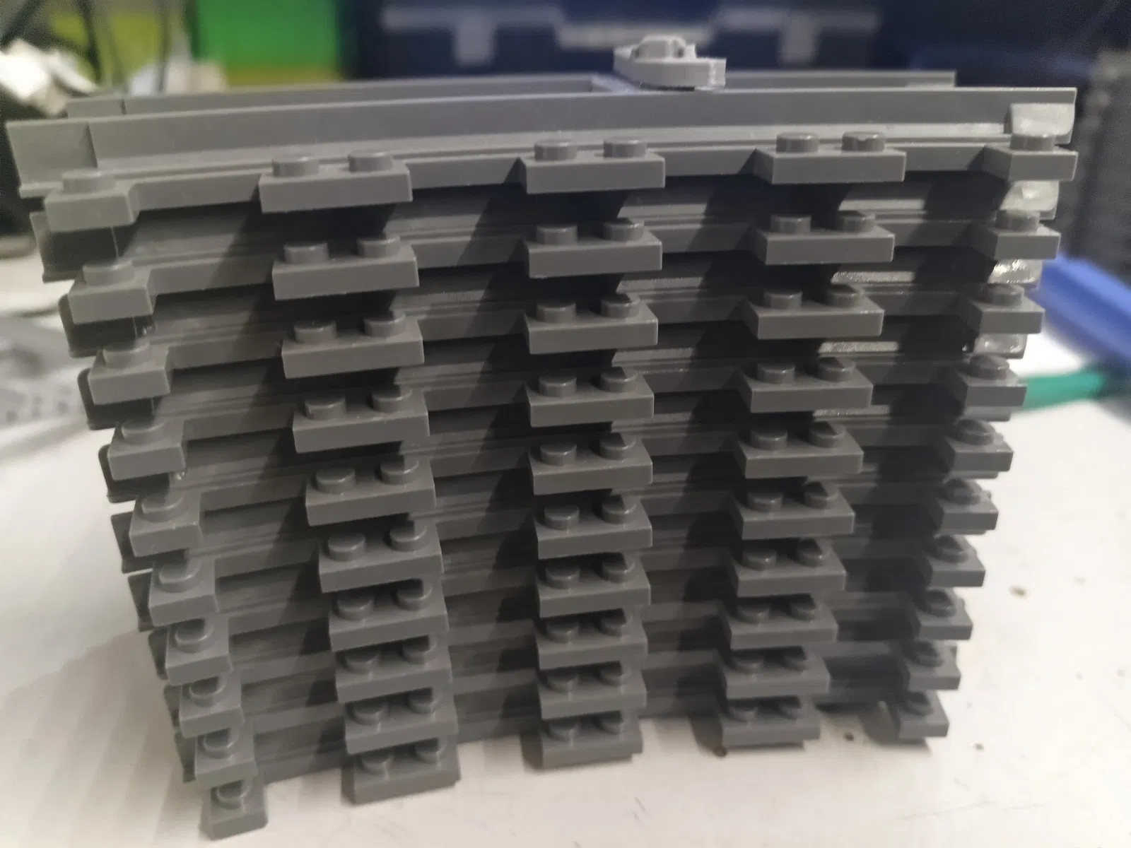I made storage pin for my kids for lego city rails. One pin is able to storage for ten rails. There are two types of pins, first for straight rails and second for curved rails. It fits original rails from lego city and from 3d printed rails from pinterest or other pages.