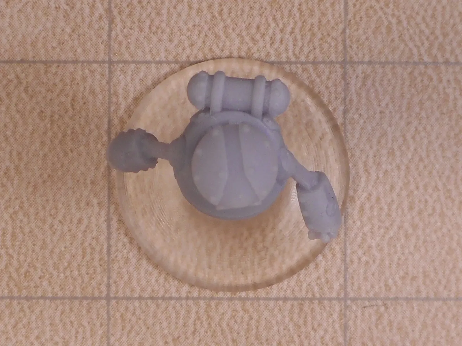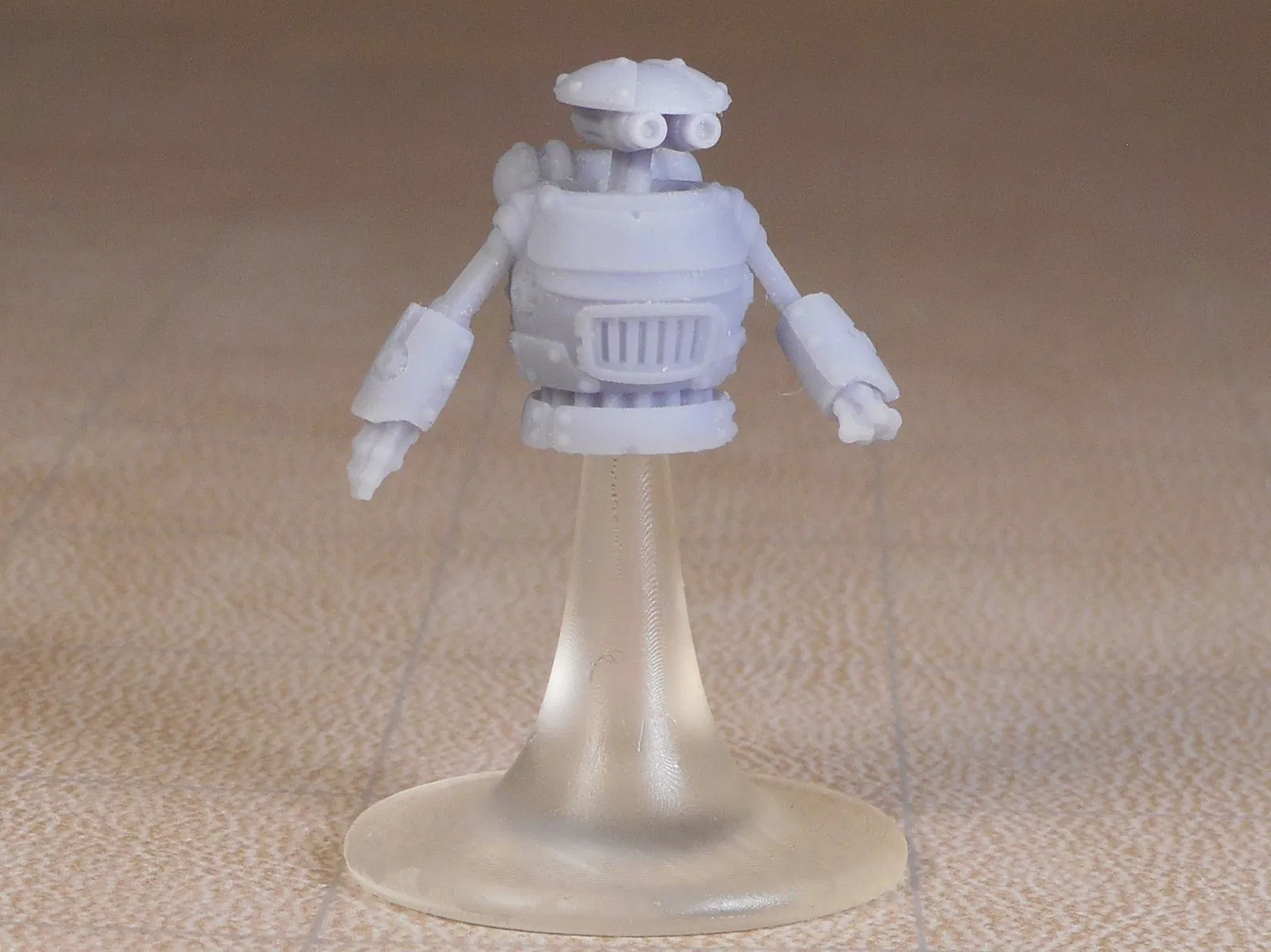 Mô hình này được thiết kế để in thành nhiều bộ phận và dán lại với nhau. Cánh tay và đầu được gắn bằng khớp cầu, cho phép bạn kiểm soát một chút tư thế của mô hình khi dán lại. Nó cao 1,4 inch (36mm) khi lắp ráp và đặt trên đế của nó. Đế có đường kính 1 inch (25mm).