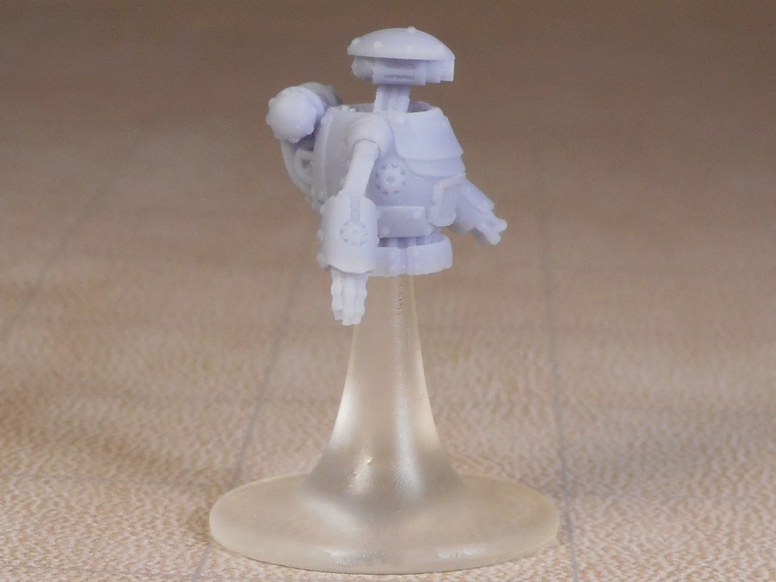 Một drone robot đồng hồ bay lơ lửng. Mô hình thu nhỏ này được thiết kế để sử dụng với các nhân vật có tỷ lệ 28mm-32mm trong các trò chơi nhập vai trên bàn như Dungeons and Dragons. Ở tỷ lệ này, nó có kích thước tương đương với phần thân và cánh tay của một nhân vật con người bình thường nhưng không có chân. Nó rất phù hợp để sử dụng làm bạn đồng hành nhân tạo của một thợ cơ khí hoặc người chế tạo. Nó cũng có thể đặc biệt hoạt động tốt như một người hầu homunculus cho thợ cơ khí D&D. Nó cũng có thể được sử dụng như một quái vật kẻ thù bằng đồng hồ.