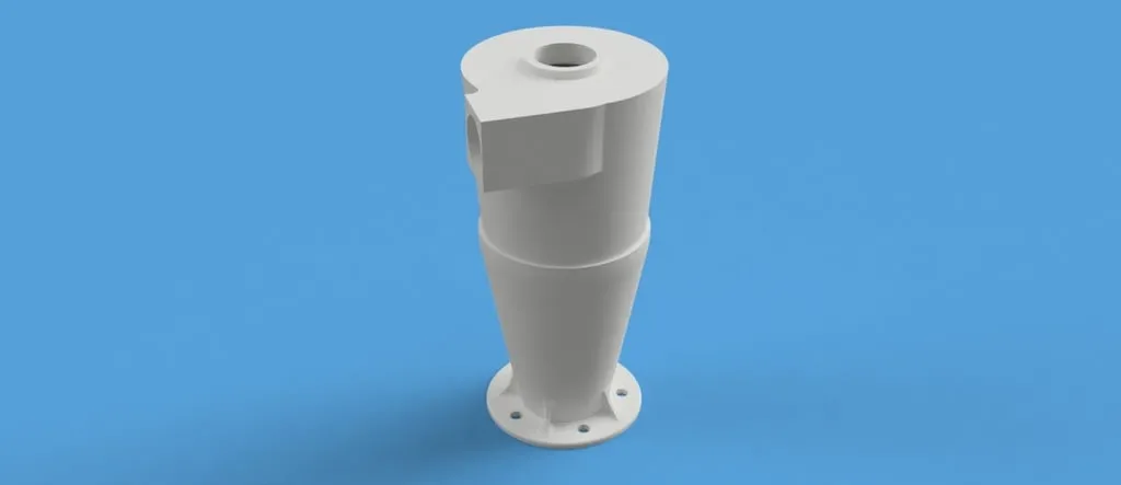 Đây là bộ tách lốc xoáy cho máy hút bụi khô ướt, khuyên dùng in với lớp vỏ dày và chiều cao lớp 0.3mm. Sau khi in, bạn cần dán các bộ phận lại với keo ống ABS và chà nhám. Sản phẩm cuối cùng có bề mặt nhẵn mịn, thích hợp để lắp đặt.