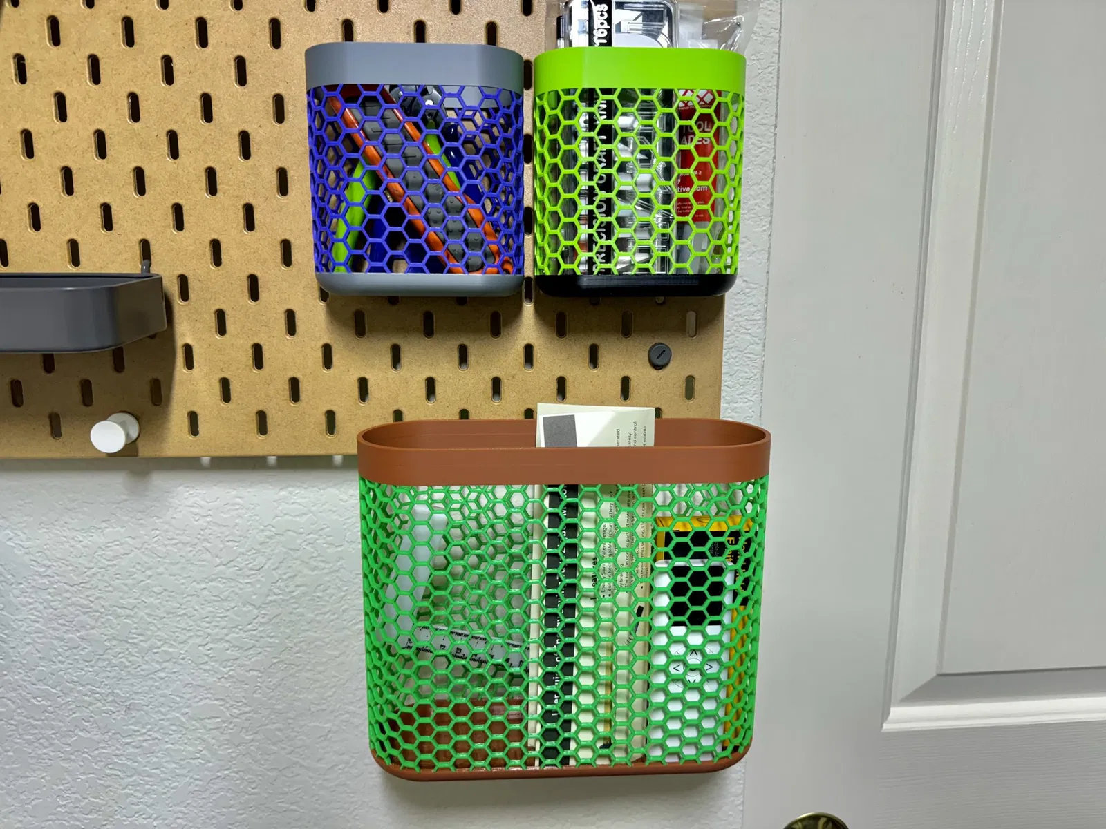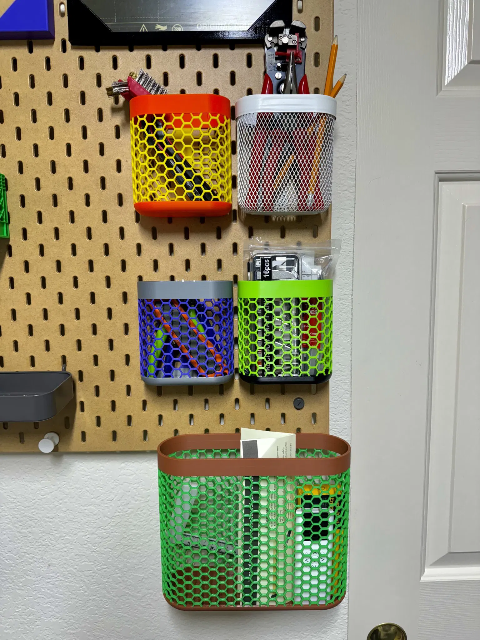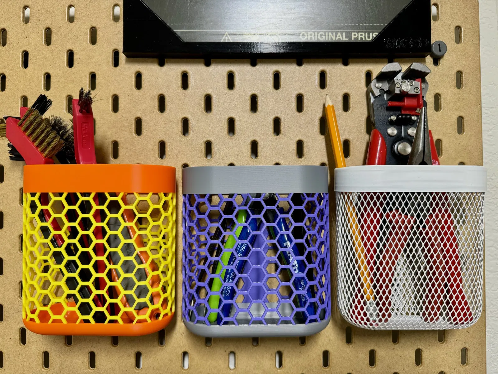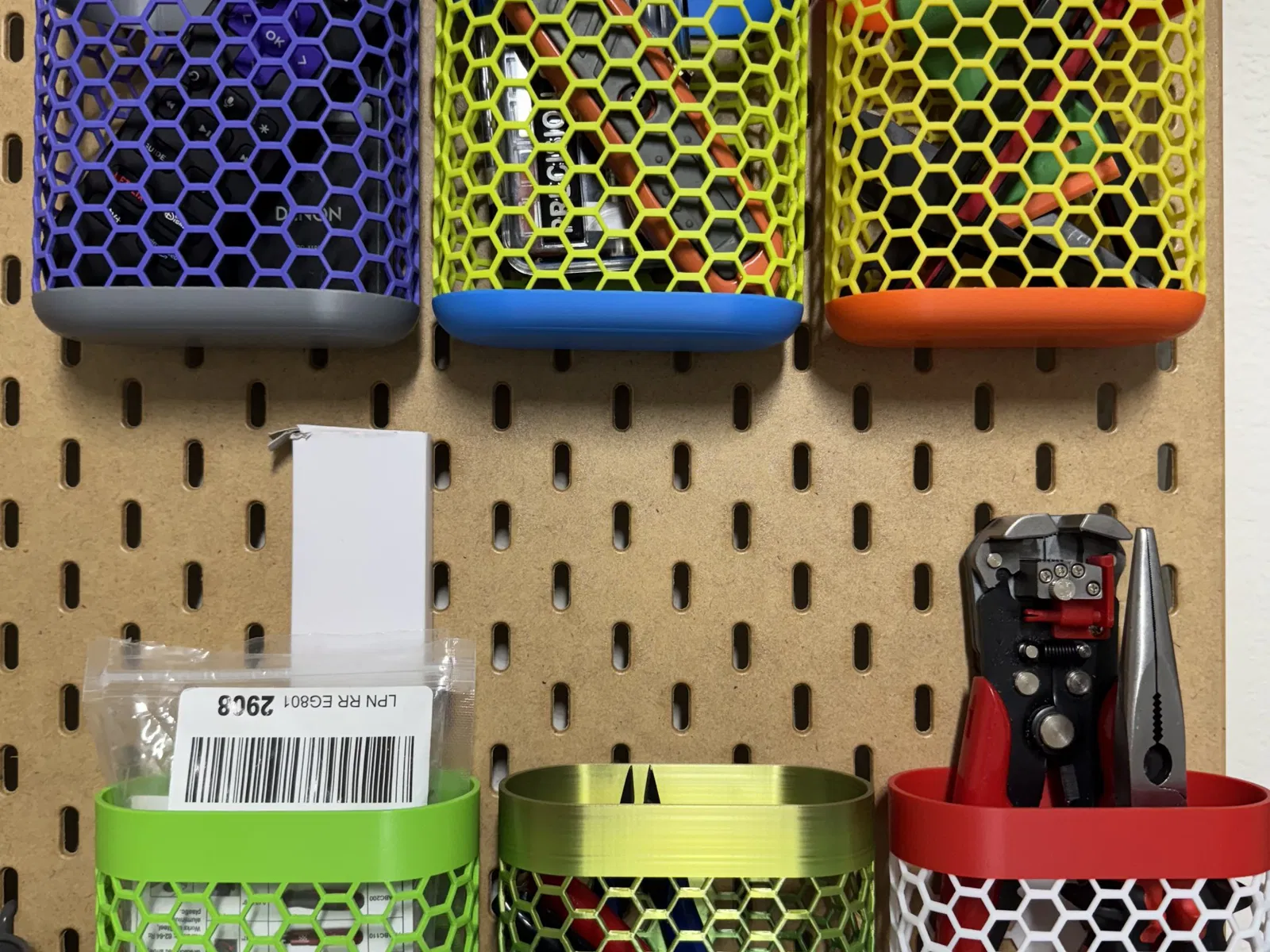 Tái tạo lại mẫu Rổ SKÅDIS gốc nhưng với họa tiết hình lục giác thay vì hình thoi. Mẫu này được thiết kế để giống y như bản gốc của IKEA, nhưng với một số cải tiến. Có thể in các bộ phận khác nhau bằng nhiều màu sắc. Phiên bản lớn và vừa có sẵn, cùng với các móc treo được cải thiện.