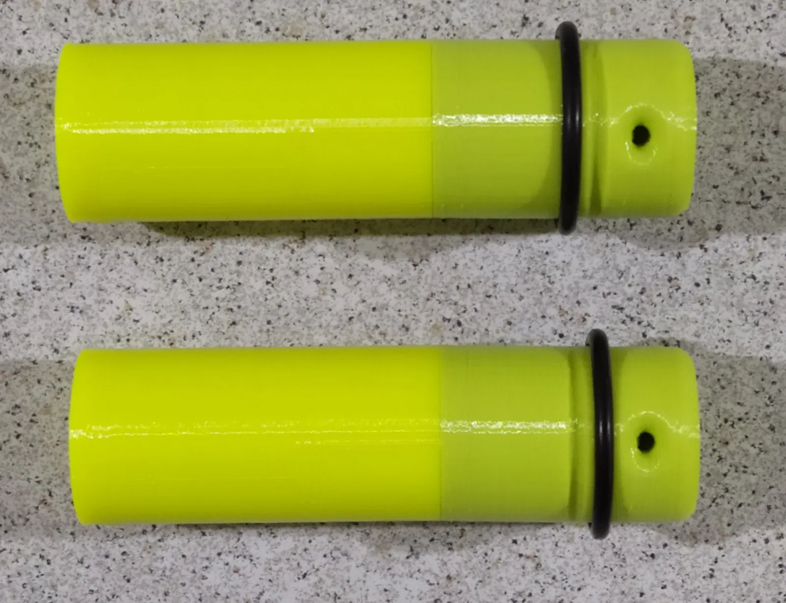 Cập nhật (11/12/2022): Tôi đã cập nhật thiết kế và thêm hai rãnh vào phần trên. Điều này cho phép sử dụng O-ring hoặc dây thun để chỉ báo tình trạng đầy / hết của bình trong hộp.