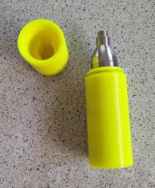 Cái hộp này cho phép bạn cất giữ và vận chuyển an toàn các bình CO2 12 gram được dùng cho một số loại súng hơi và các ứng dụng khác như bơm hơi khẩn cấp cho xe đạp. Nó chủ yếu dành cho các bình có thể nạp lại, sẽ xì CO2 nếu có vật nhọn tác động vào mặt trước hoặc mặt sau của nó, nhưng các bình dùng một lần cũng có thể vừa với nó. Để bảo vệ khỏi việc xì hơi ngẫu nhiên, hộp có các gờ bên trong để giữ cho các đầu bình cách xa thành hộp. Nó cũng có hai lỗ và các rãnh xung quanh các đầu, vì vậy nếu một cái ron bắt đầu rò rỉ, CO2 có thể thoát ra ngoài an toàn, tránh nguy cơ tích tụ áp suất bên trong hộp.