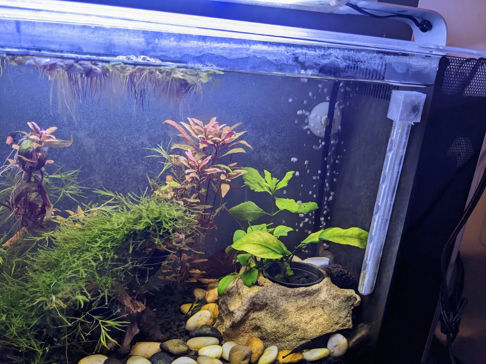 Dòng nước đã chuyển từ một dòng chảy mạnh mẽ thành cực kỳ nhẹ nhàng. Tôm của tôi giờ hạnh phúc hơn nhiều. In như đã cung cấp với một vành rộng để ổn định. Tôi đã sử dụng PETG tự nhiên/trong suốt Overture cho cái của tôi.