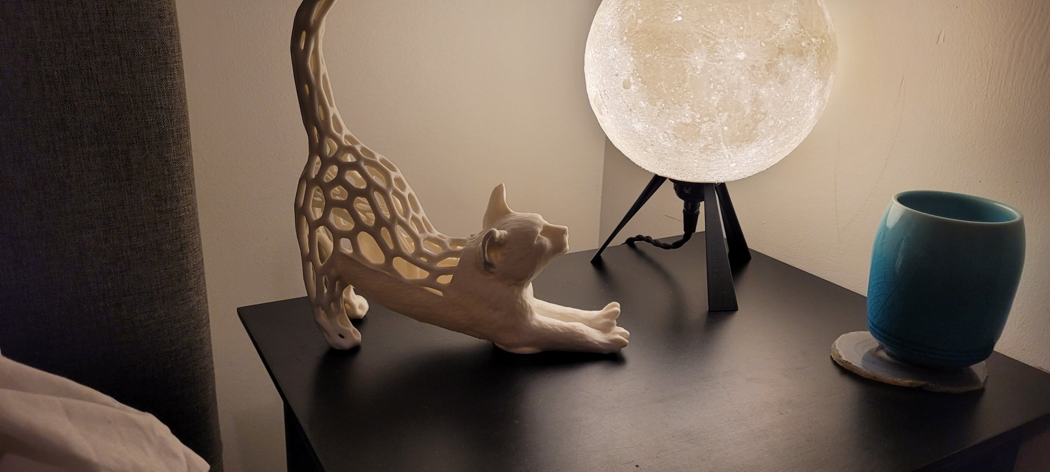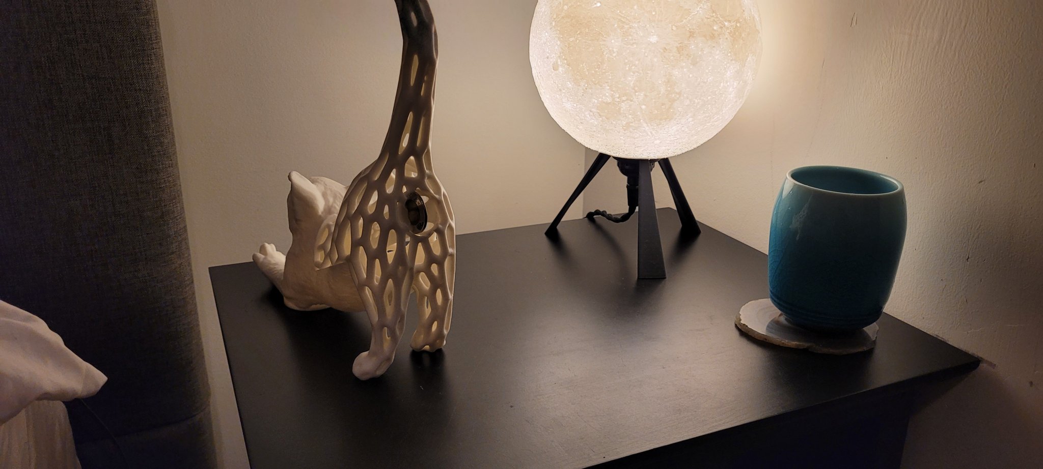 There's a voronoi version of the kitty bank and a solid one. The voronoi lets you watch the coin go down the coin slide and lets you judge how much money is in your kitty bank. A word of caution, keep the voronoi variant on a flat surface so the coins can't spill!