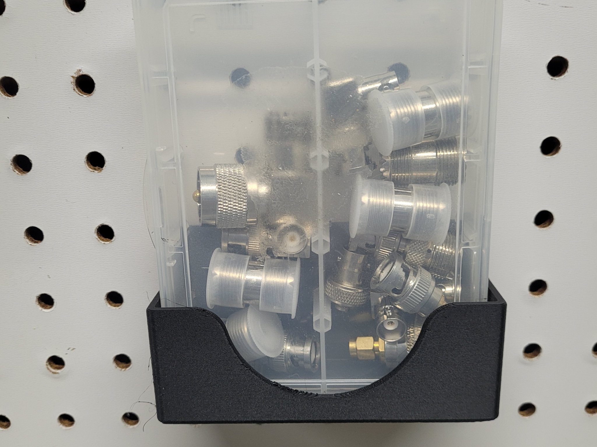 A pegboard box, originally designed to hold an organizer I keep coax adapters in. Box interior is 32 x 102 x 35mm.