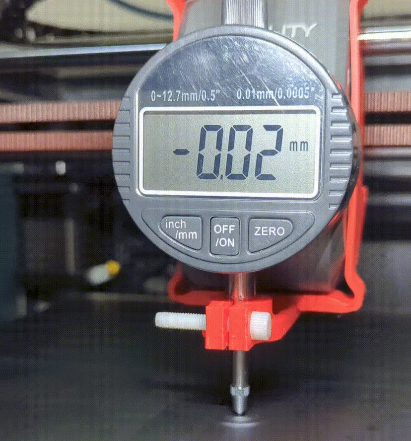 5.) [Cập nhật 15/09] đây có lẽ là cách tốt nhất để căn chỉnh bàn nhiệt (tạm thời, về lý thuyết), nhưng nếu sự khác biệt lưới của bạn cao hơn 2.5mm, nên làm theo cách chính thức của Creality rồi mới làm cách này - pát kẹp đồng hồ so cho bàn nhiệt
