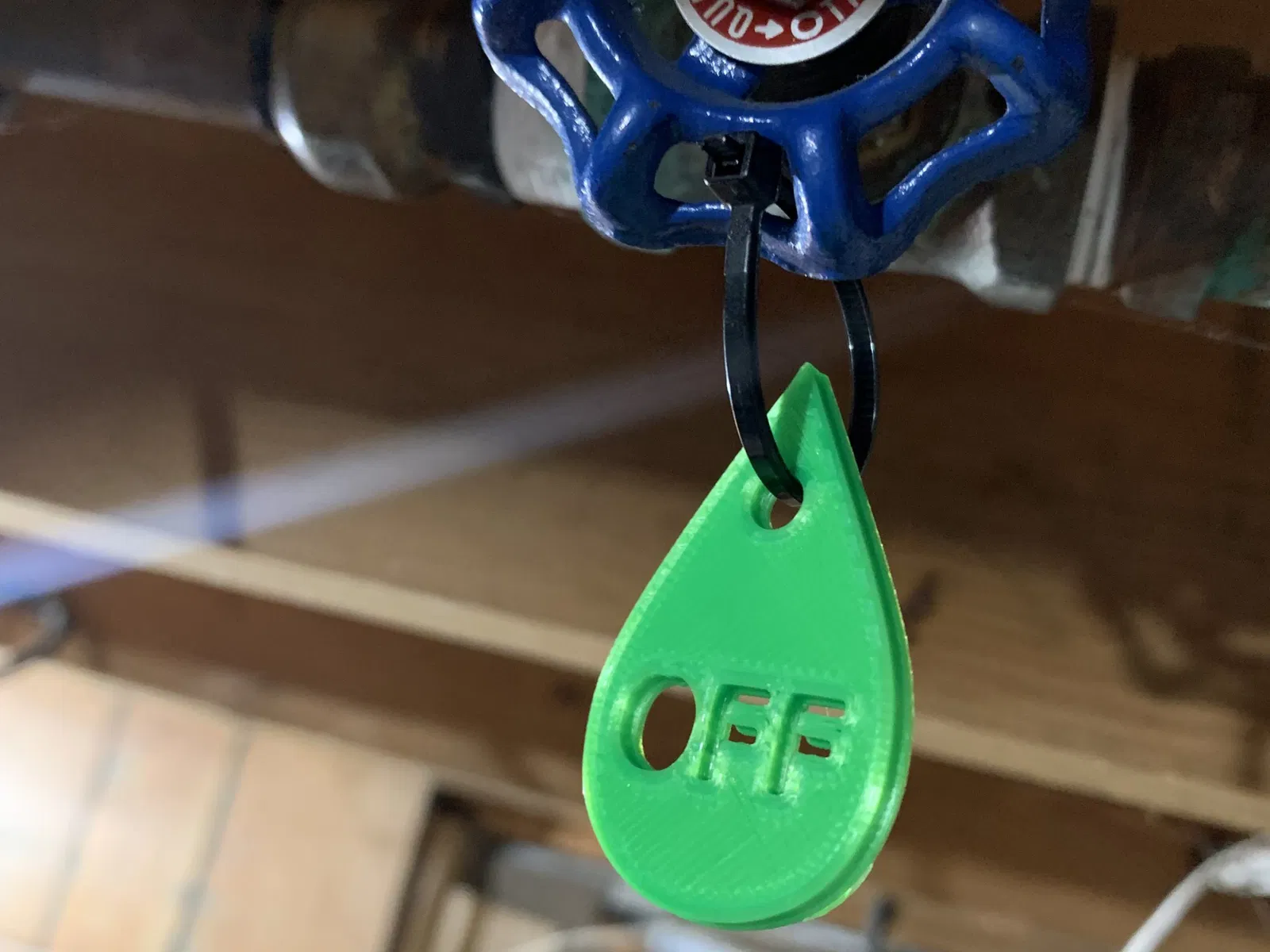 Đây là một cái thẻ để gắn vào van khóa nước chính trong nhà. Cái này sẽ giúp vợ hoặc con bạn biết chỗ nào để khóa nước khi bạn vắng nhà, phòng trường hợp có sự cố xảy ra với đường ống nước.