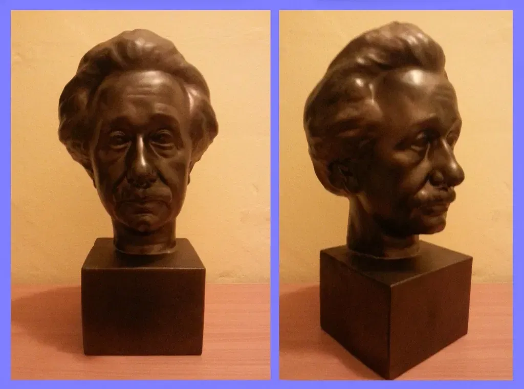 Đây là một bản quét 3D của bức tượng bán thân của Albert Einstein từ Usher Gallery và The Collection ở Lincoln, Vương quốc Anh. Bức tượng bằng đồng được làm vào năm 1930 bởi Artur Loewenthal và được quét 3D bởi Oliver Laric vào năm 2013. Tôi muốn tạo ra mô hình 3D lớn bằng bức tượng bán thân bằng đồng gốc (cao 34 cm). Tôi cũng đã sửa một số vấn đề nhỏ. Tôi quyết định làm cho bản quét rỗng và cắt nó thành các mảnh để tiết kiệm vật liệu và thời gian. Tôi đã lấp đầy các nửa in bằng thạch cao để tăng trọng lượng. Tệp gốc có thể được tìm thấy ở đây: