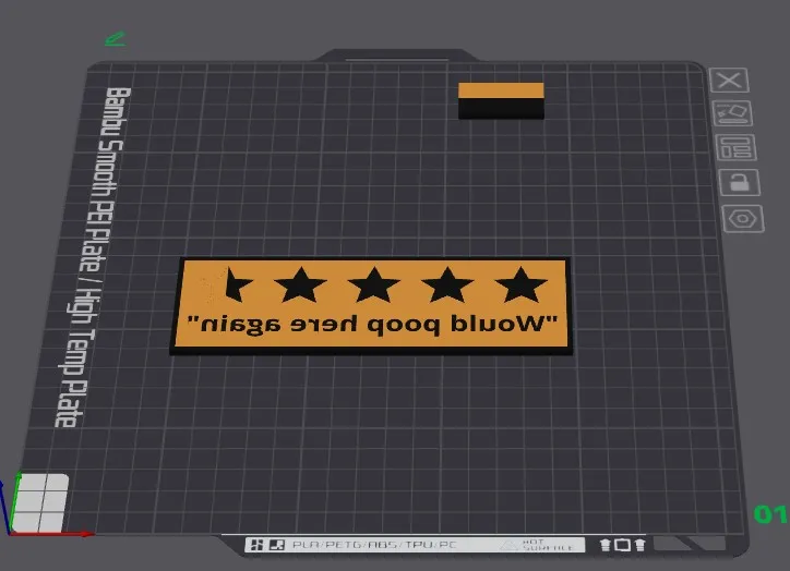 Thiết kế để in úp mặt xuống để lấy vân/thiết kế của bàn in, nhưng bạn cũng có thể in ngửa nếu thích. Bề mặt trơn hoặc có hoa văn đẹp sẽ giúp sản phẩm nổi bật hơn.