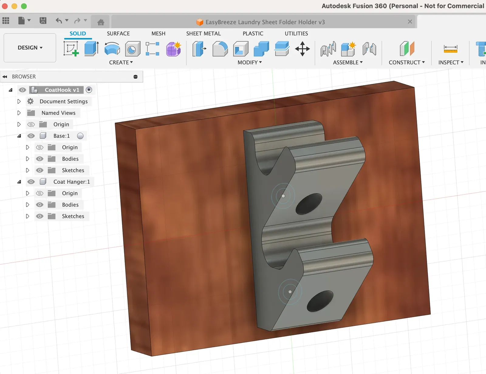 Cái móc áo này vừa đơn giản lại vừa chắc chắn, được làm để gắn lên miếng gỗ 1x4. In bằng PLA với 4 lớp tường và 20% infill để đảm bảo độ bền.