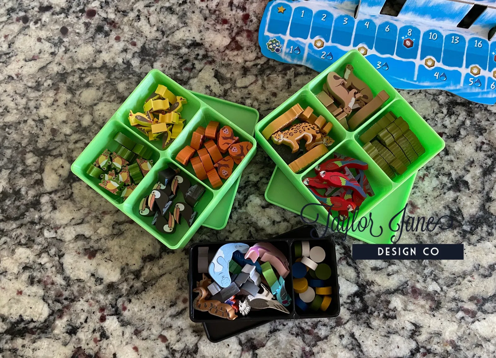Finally, I designed a thematic “Deluxe Edition” of this insert that can purchased at my Etsy shop. The final design has multicolor prints that can be printed with any standard printer that can change colors at layer height. It has wood grain texture and hidden animals!
