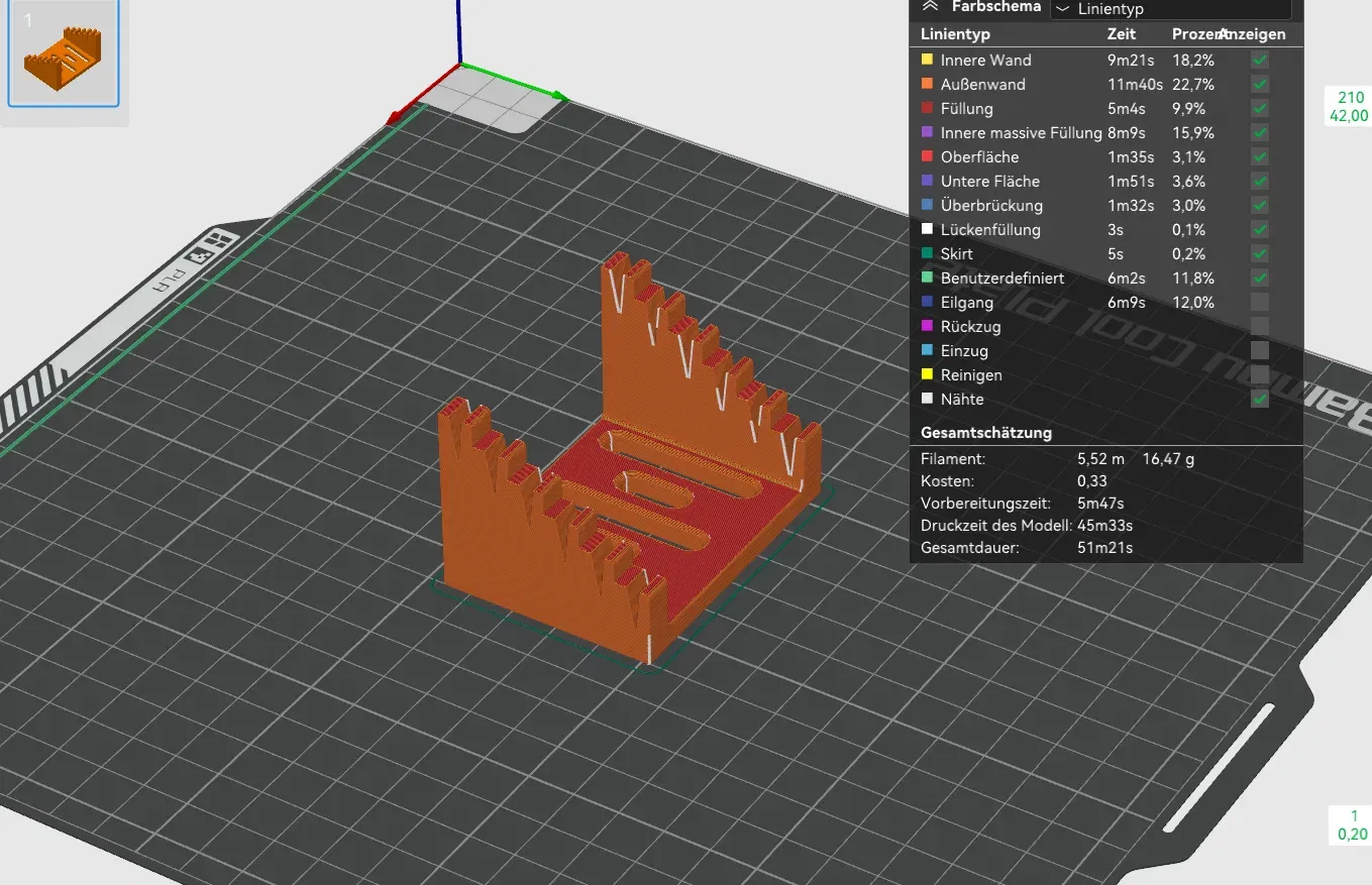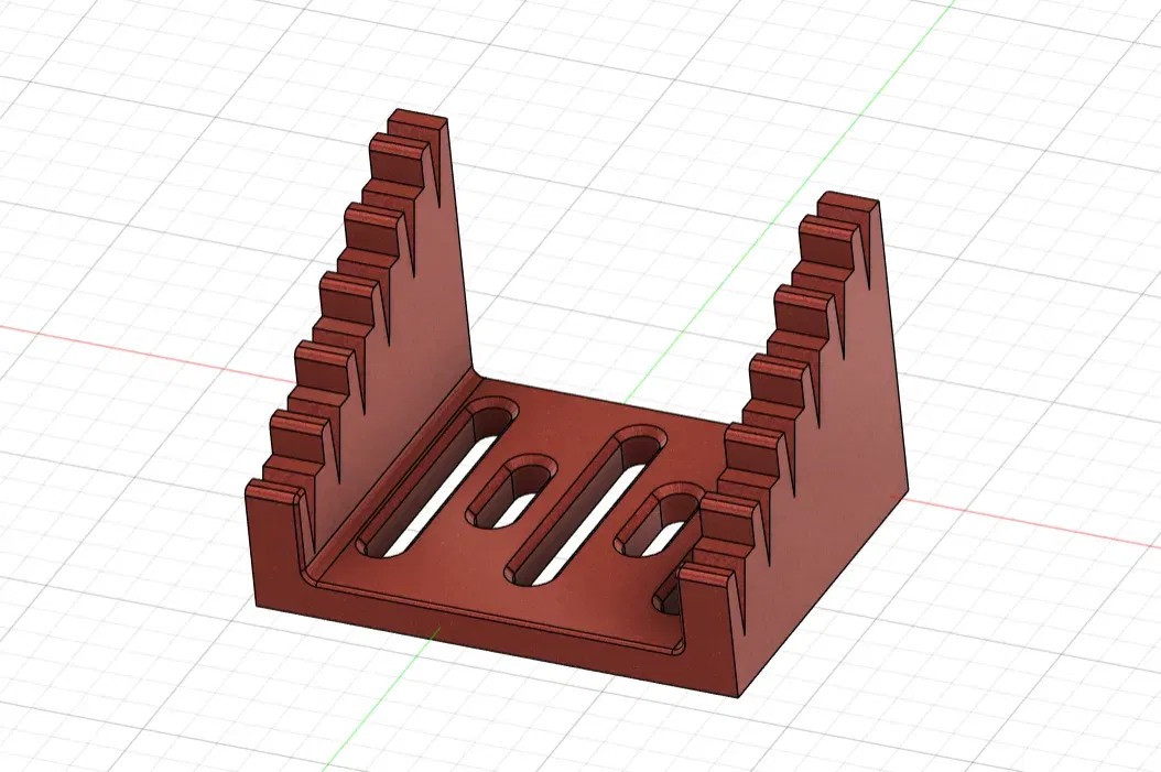 Ich wollte meine eigene Löthilfe entwerfen und sie noch etwas verfeinern, daher habe ich in der Mitte zum einen um Filament zu sparen, zum anderen um die Station irgendwo festschrauben zu können, ein paar Aussparungen eingefügt.