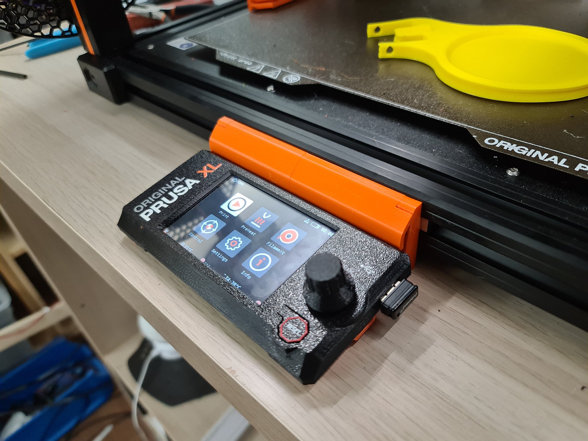 Tui đang làm thùng bao cho Prusa XL và màn hình LCD cản đường làm cửa. Cái giá đỡ màn hình này giúp lắp cửa sát khung nhôm, giữ nguyên dây cáp và ốc zin. Có thêm nắp che dây cho đẹp nhưng không bắt buộc.