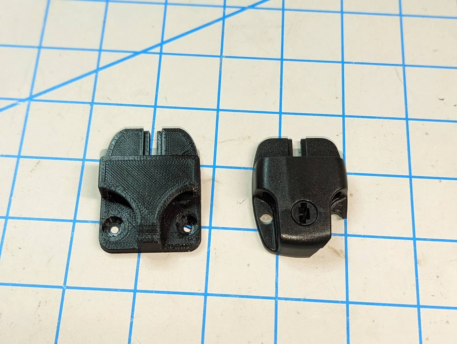 Bộ phận neo khóa cho khóa nắp bồn spa kiểu Artesian. Cái cũ bị gãy do có đứa nhỏ quá sức nhiệt tình mở nắp ra. In bằng nhựa PETG cho bền để chịu được sự thay đổi nhiệt độ của các mùa.