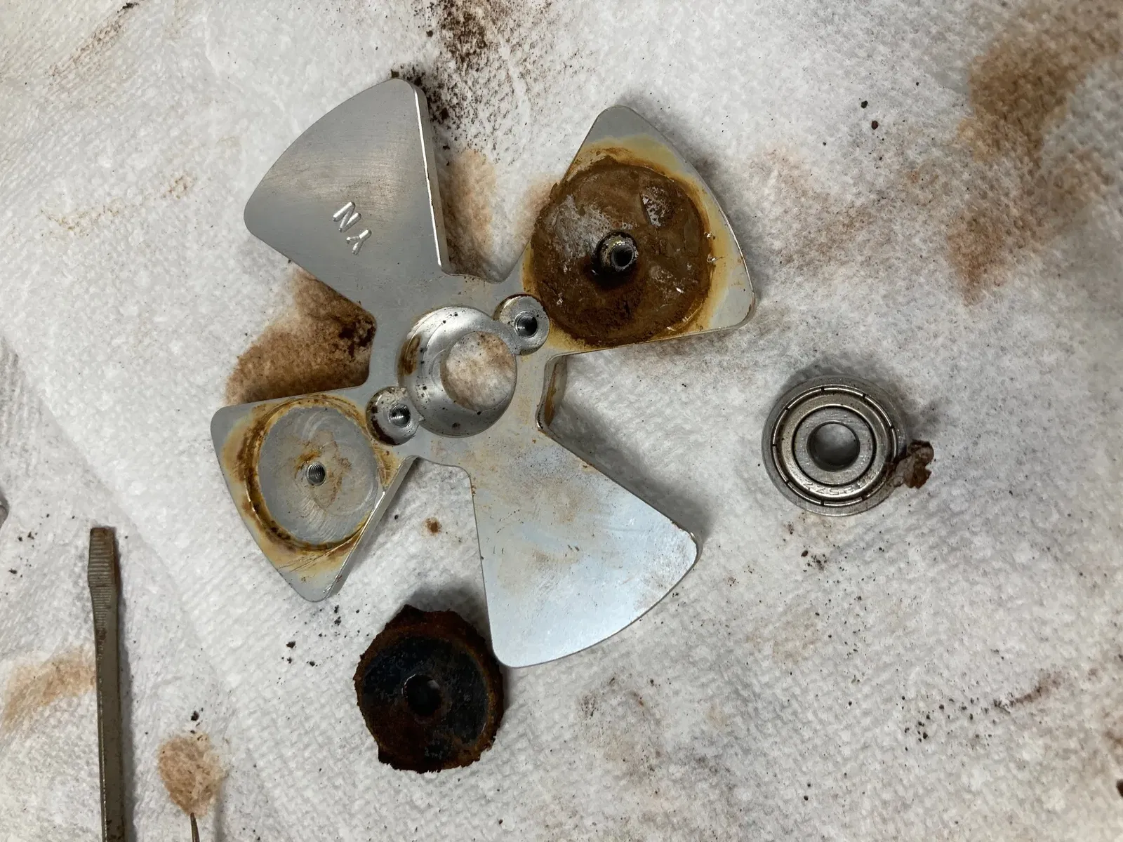 Cái máy Wash and Cure 2.0 của Anycubic hồi xưa có nam châm sắt với bi bạc đạn trong cái thùng rửa. Lâu ngày nó bị sét á, rồi làm dơ hết cả thùng nước (90% IPA thì cũng có 10% nước à). Anycubic có bán cái trục quay mới nếu máy của bạn hết bảo hành, mà tui hổng biết cái mới đó có bị y chang vầy không.
