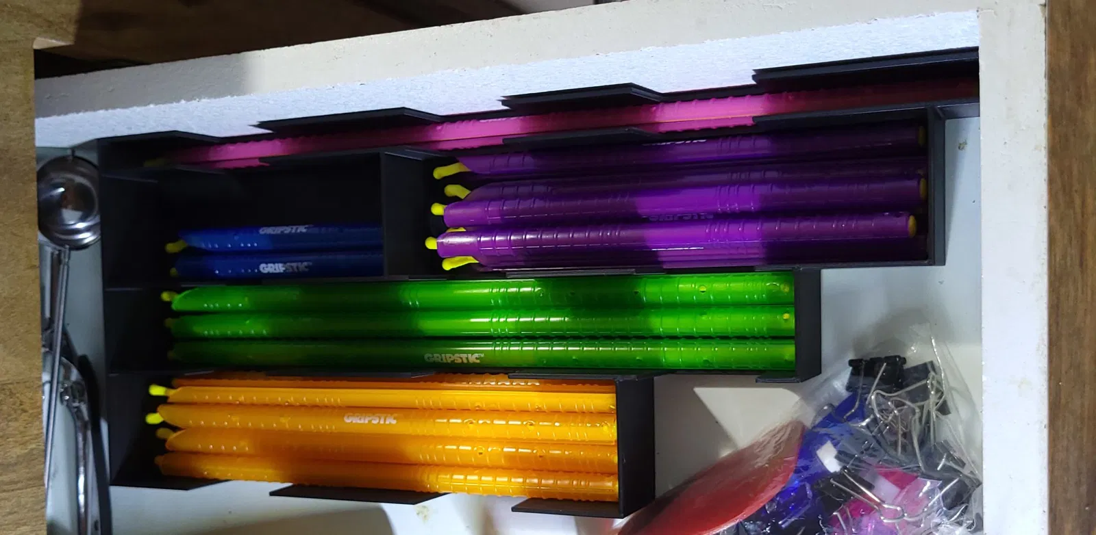 Bạn xài đồ bịt miệng túi GRIPSTIC mà nó cứ văng lung tung trong ngăn kéo bếp? Giờ thì mỗi loại có chỗ ở riêng rồi, muốn lấy loại nào cũng lẹ. Có kèm file OpenSCAD để bạn tùy chỉnh nha.
