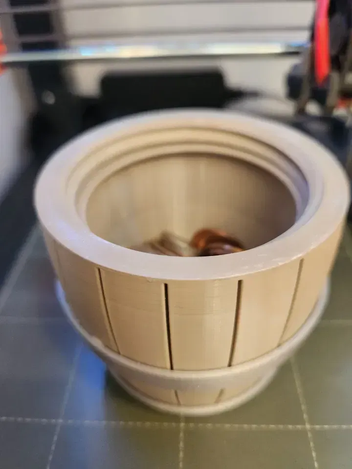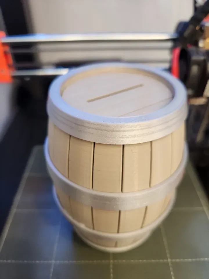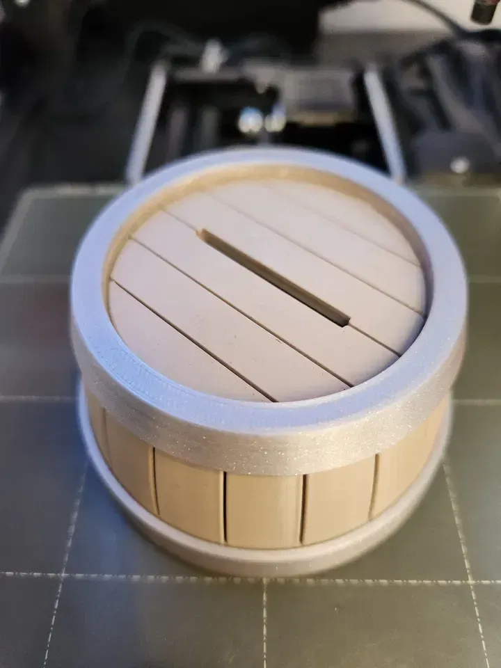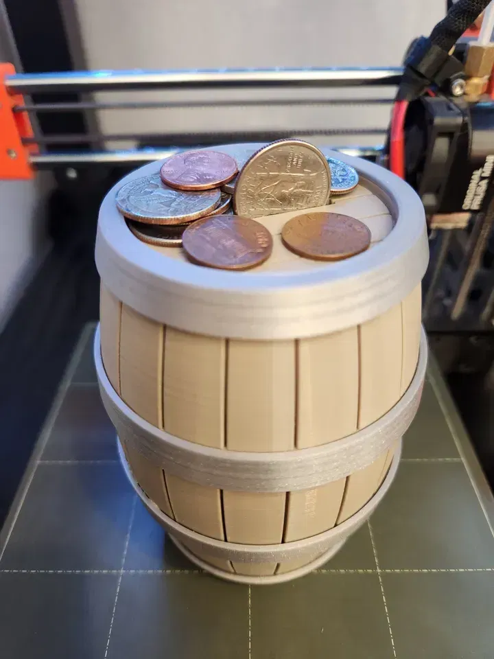 Một bản remix của "Simple Twist Open Barrel" để thêm khe nhét tiền xu. Giờ thì, bạn có thể đặt một cái thùng trên bàn để nhận tiền tip, hoặc thậm chí dùng thay cho heo đất! Nói gì thì nói, chỉ có người lạ mới nghĩ tới việc cất tiền trong thùng thôi…
