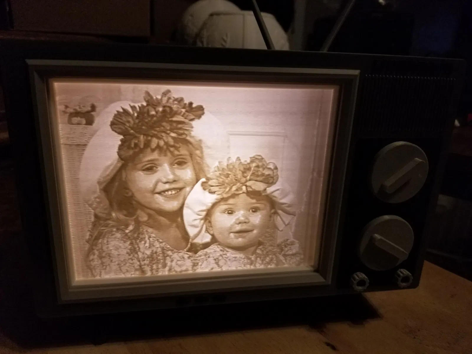 Hộp đèn lithophane này giống như một TV loại ống retro cũ.
