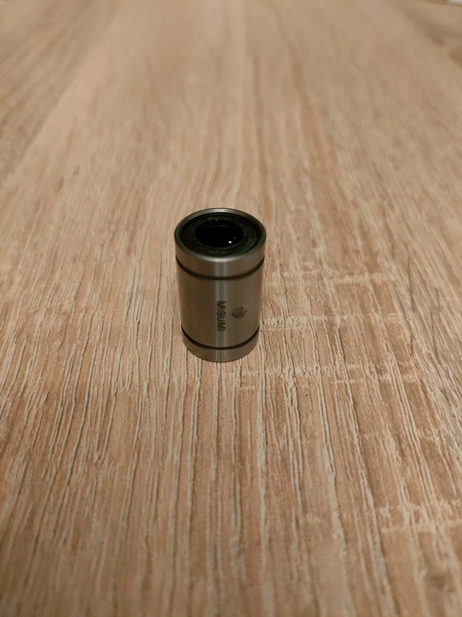 Cho cái đế này tui dùng 2 thanh kim loại 8x370mm cũ từ máy in 3D của tui (mấy thanh này có rãnh nên bỏ xó luôn). Và 2 viên bi LMU08.