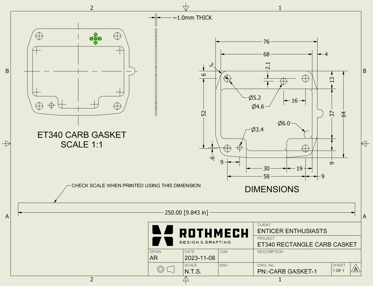 Enticer 340 TPU Carburetor Gasket (Rectangular Bowl)