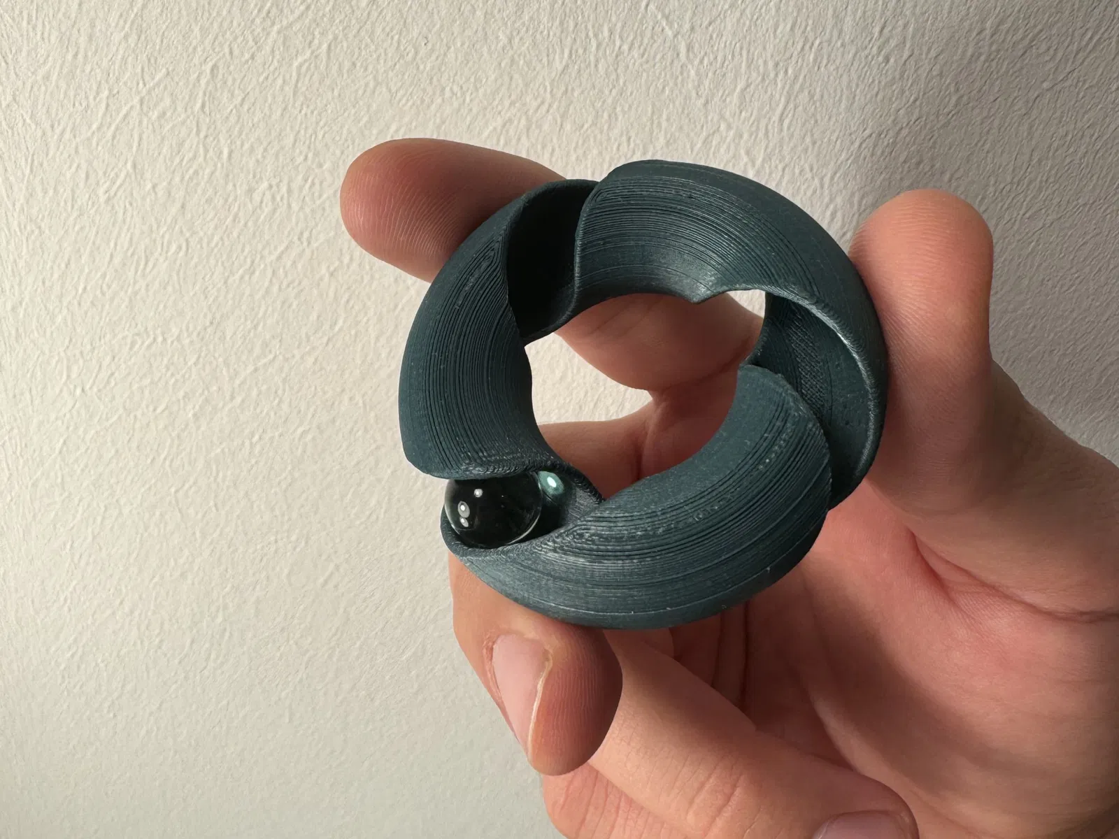 Nằm gọn trong một chiếc vỏ hình bánh donut xoắn ốc tinh xảo là một viên bi, bắt đầu một hành trình vô tận qua những khúc quanh đầy quyến rũ của lõi món đồ chơi fidget này. Sự kỳ diệu mở ra khi viên bi di chuyển duyên dáng theo đường tròn vô hạn, biến mất rồi lại xuất hiện bên trong chiếc bánh donut, tạo nên một vũ điệu chuyển động vĩnh cửu đầy mê hoặc.