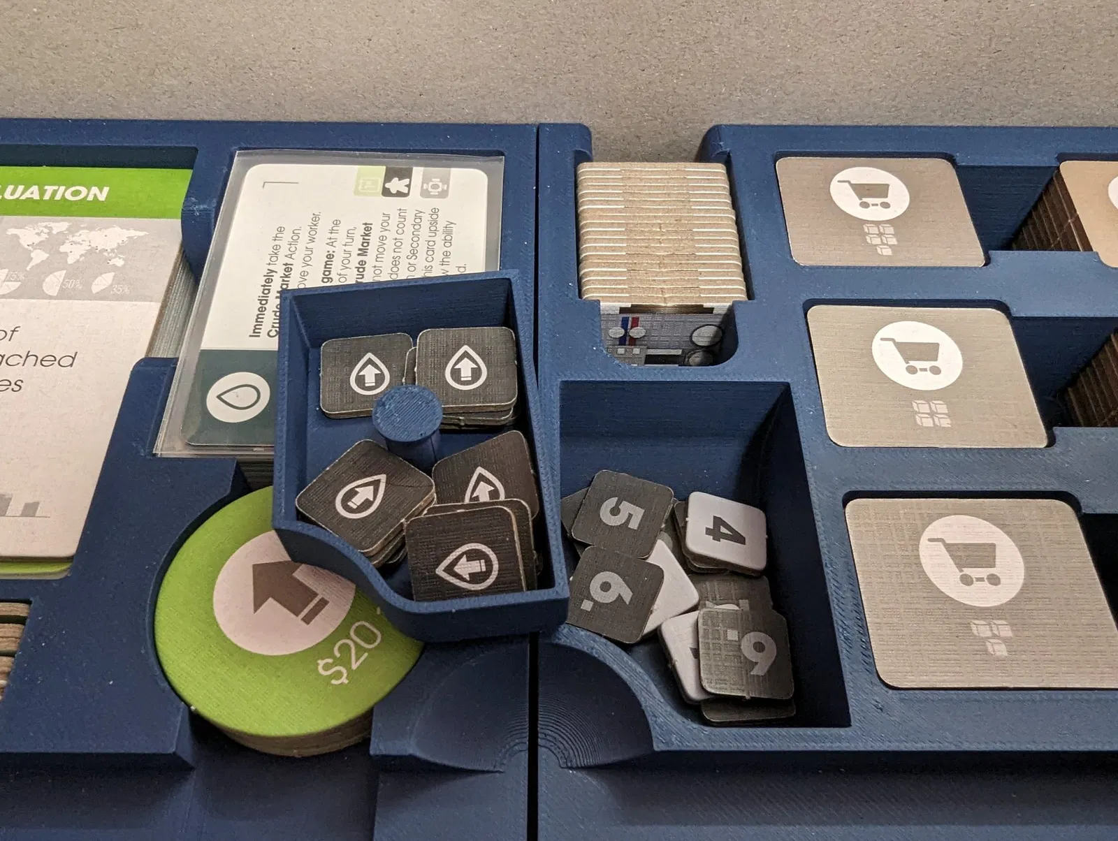 Tui mê cái thiết kế bự bự của @Josh3d lúc đầu lắm nè: Board Game Organizer - Pipeline by Josh-3d | Download free STL model | Printables.com mà tui cũng muốn hỗ trợ cho mấy cái thẻ có bọc với bản mở rộng Emerging Markets nữa.
