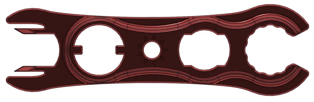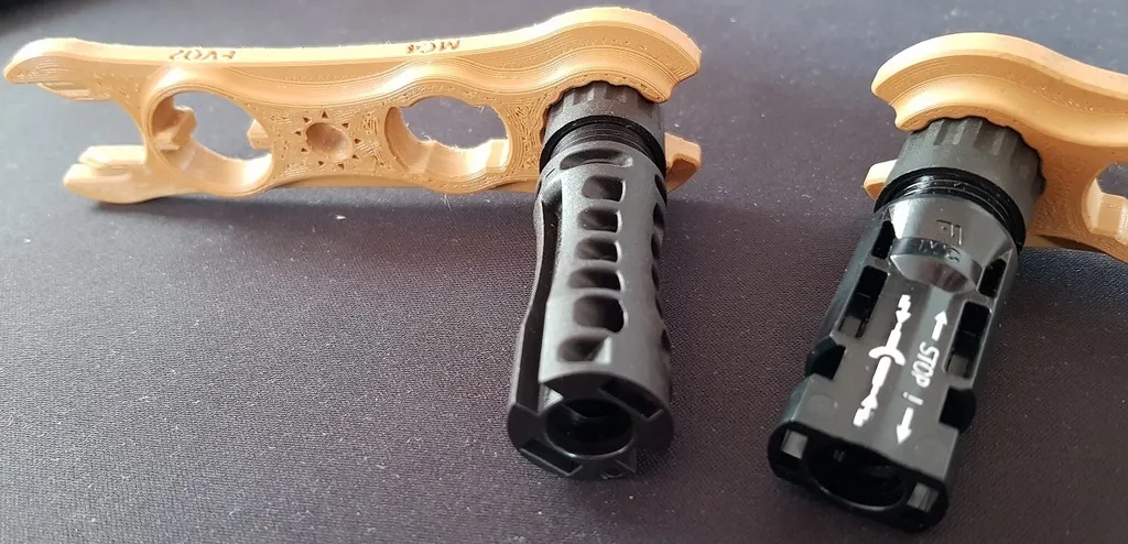 Giống như hầu hết các bản in mỏng, yếu tố quan trọng cho độ bền cấu trúc là số lượng lớp vỏ (walls), 4-5 lớp là đủ, độ đặc ruột không quan trọng lắm. PET-G có độ đàn hồi hoạt động rất tốt, đặc biệt là phần ngạnh của dụng cụ này (dùng nó để ngắt kết nối các đầu nối đã ghép với nhau).