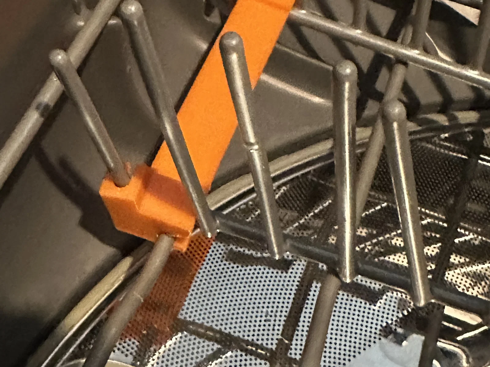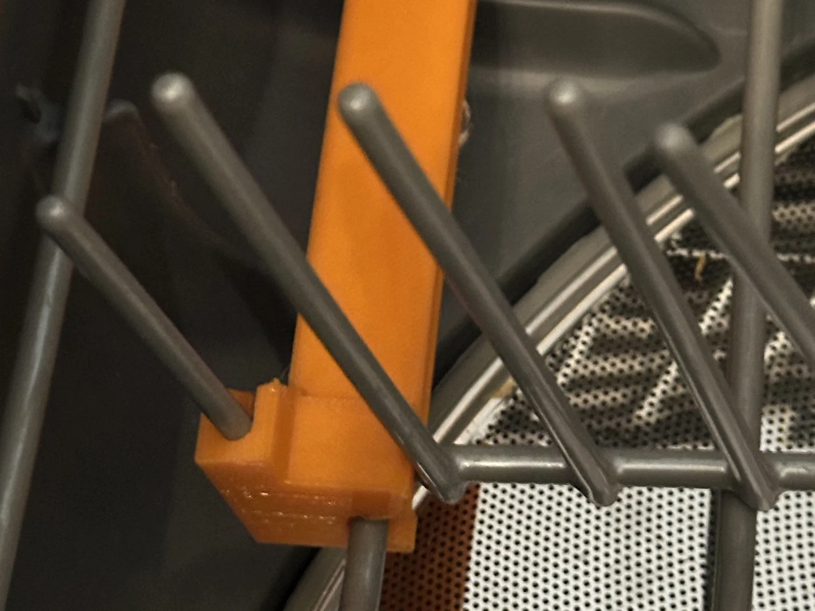 Một phiên bản chỉnh sửa của chốt giữ rổ chén máy rửa bát Fisher and Paykel. Thiết kế này không chỉ cho phép bạn dễ dàng kẹp rổ vào mà còn có khả năng khóa chặt rổ ở vị trí dưới cùng, mang lại sự ổn định và tiện lợi tối đa khi sử dụng.