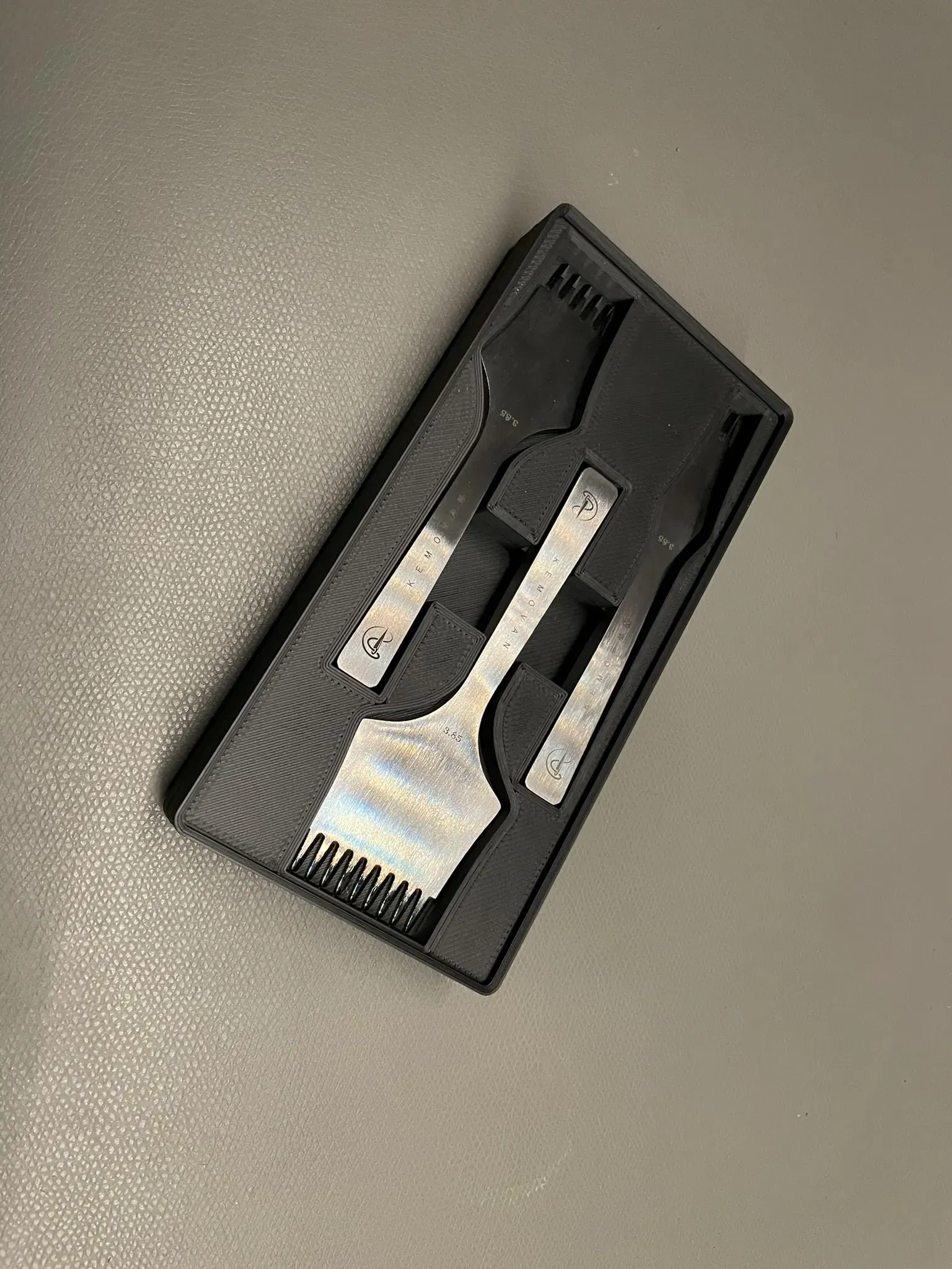 Khay Gridfinity xếp chồng 4x2 này dùng để đựng bộ ba kim khâu kiểu Pháp KemovanCraft (2, 5 và 9 răng) với kích thước 3.85mm. Đây là phiên bản nâng cấp và có cả mẫu cho kim 3mm.