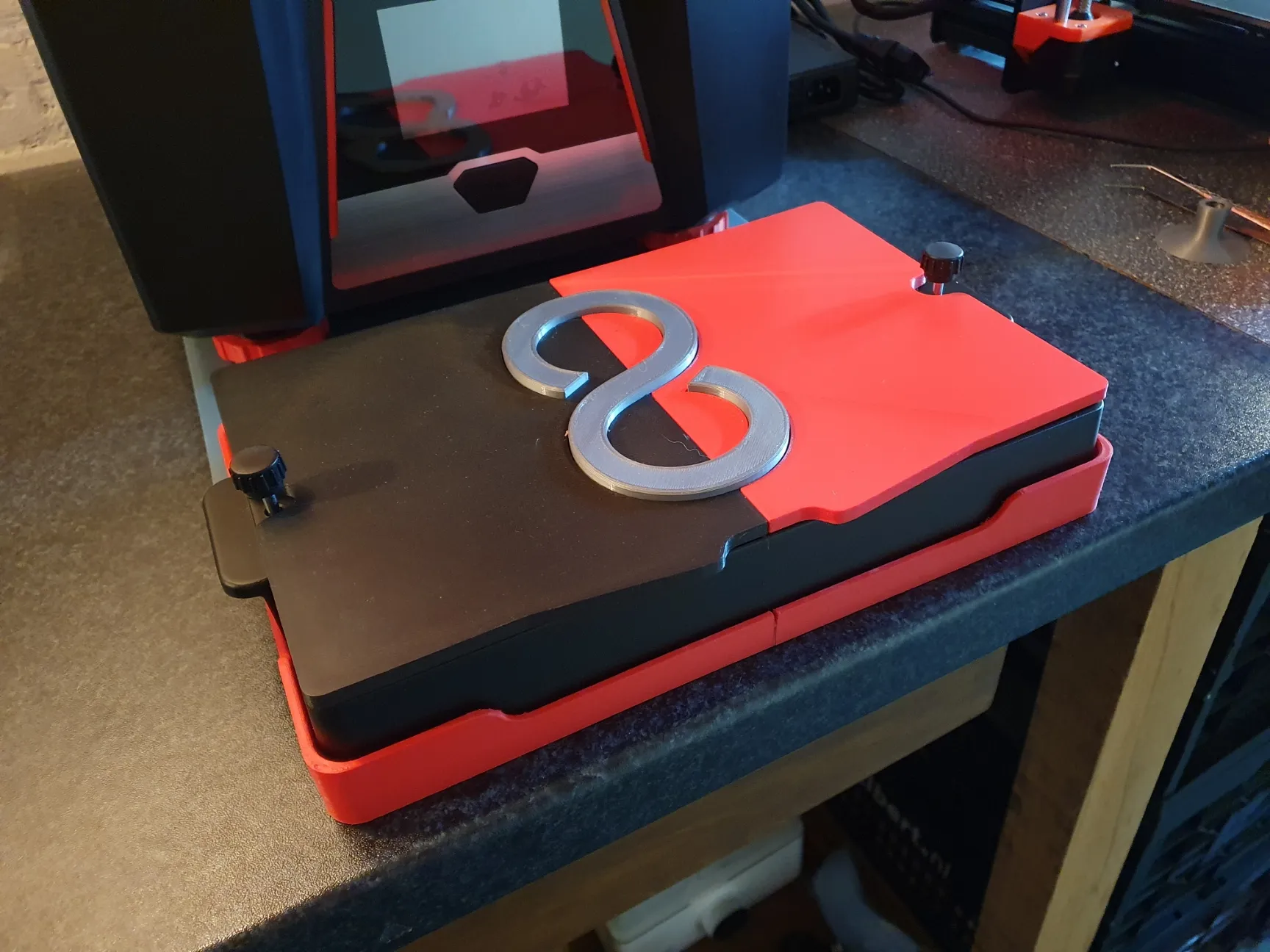 Thế là giờ nó chia làm 2 nửa, có thêm cái logo Elegoo để nối 2 mảnh lại với nhau.