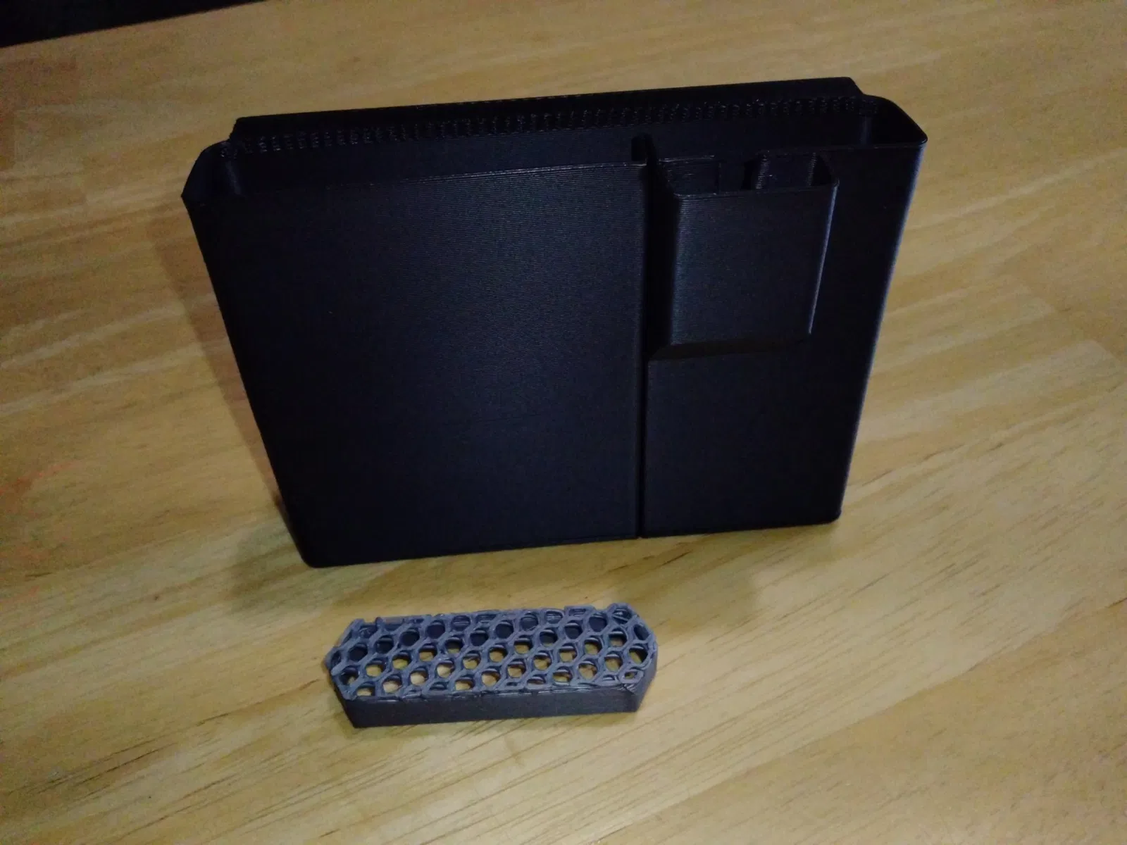 Một phiên bản đế ổn định của hộp đựng nhiều ngăn có móc treo, có thể treo trên cạnh hộp hoặc để đứng trên bàn. Thích hợp để đựng bút chì, bút dạ và đồ dùng học tập khác.