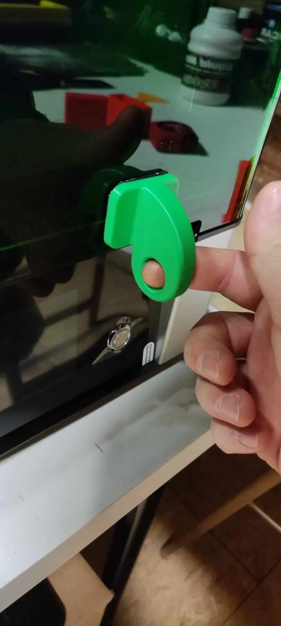 Cái tay nắm nhỏ này giúp bạn không chạm vào nắp máy khi tay bị dính nhựa resin hay gì đó, giữ cho nắp máy luôn sạch sẽ. Lắp đặt dễ dàng bằng băng keo hai mặt hoặc nano tape, không cần khoan lỗ bắt vít.