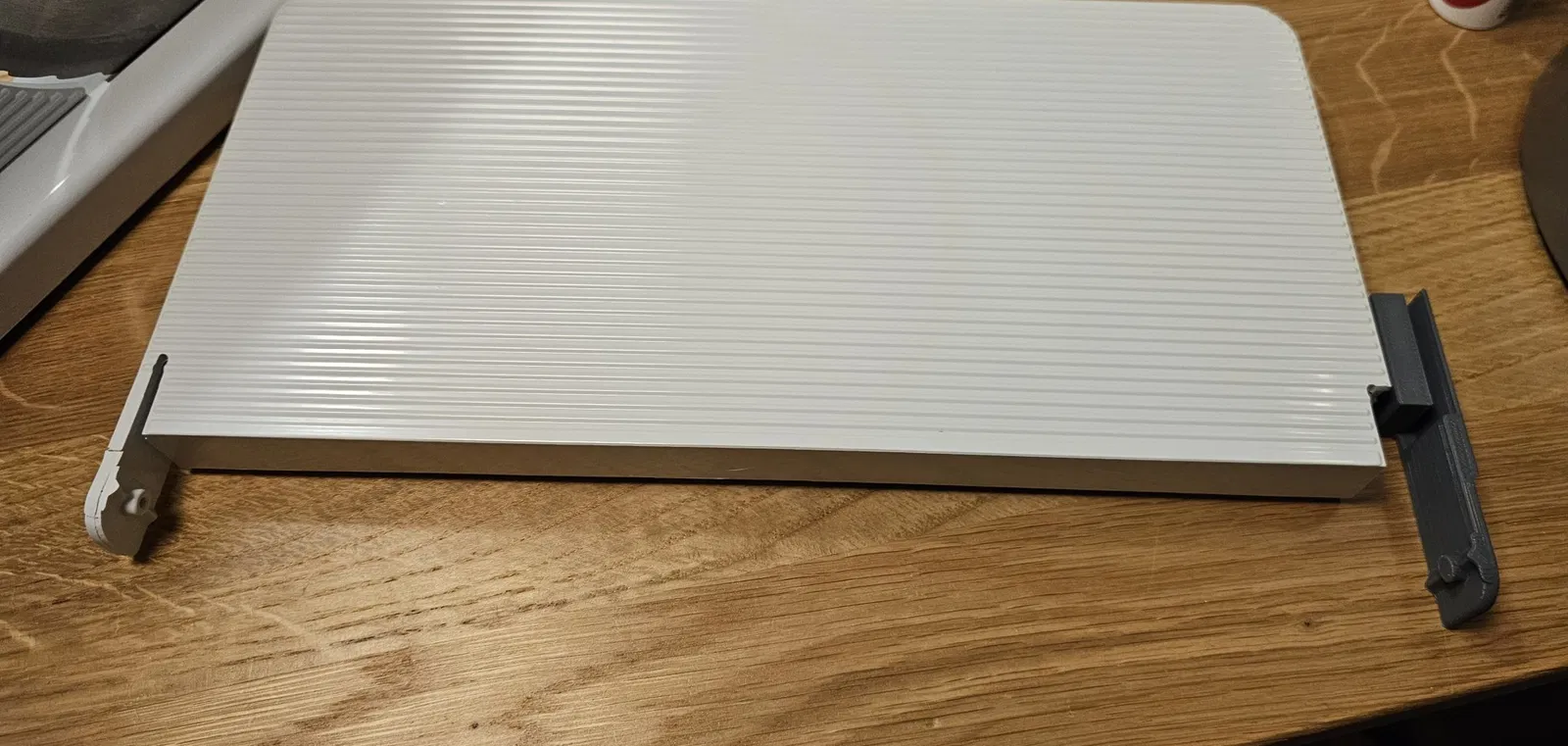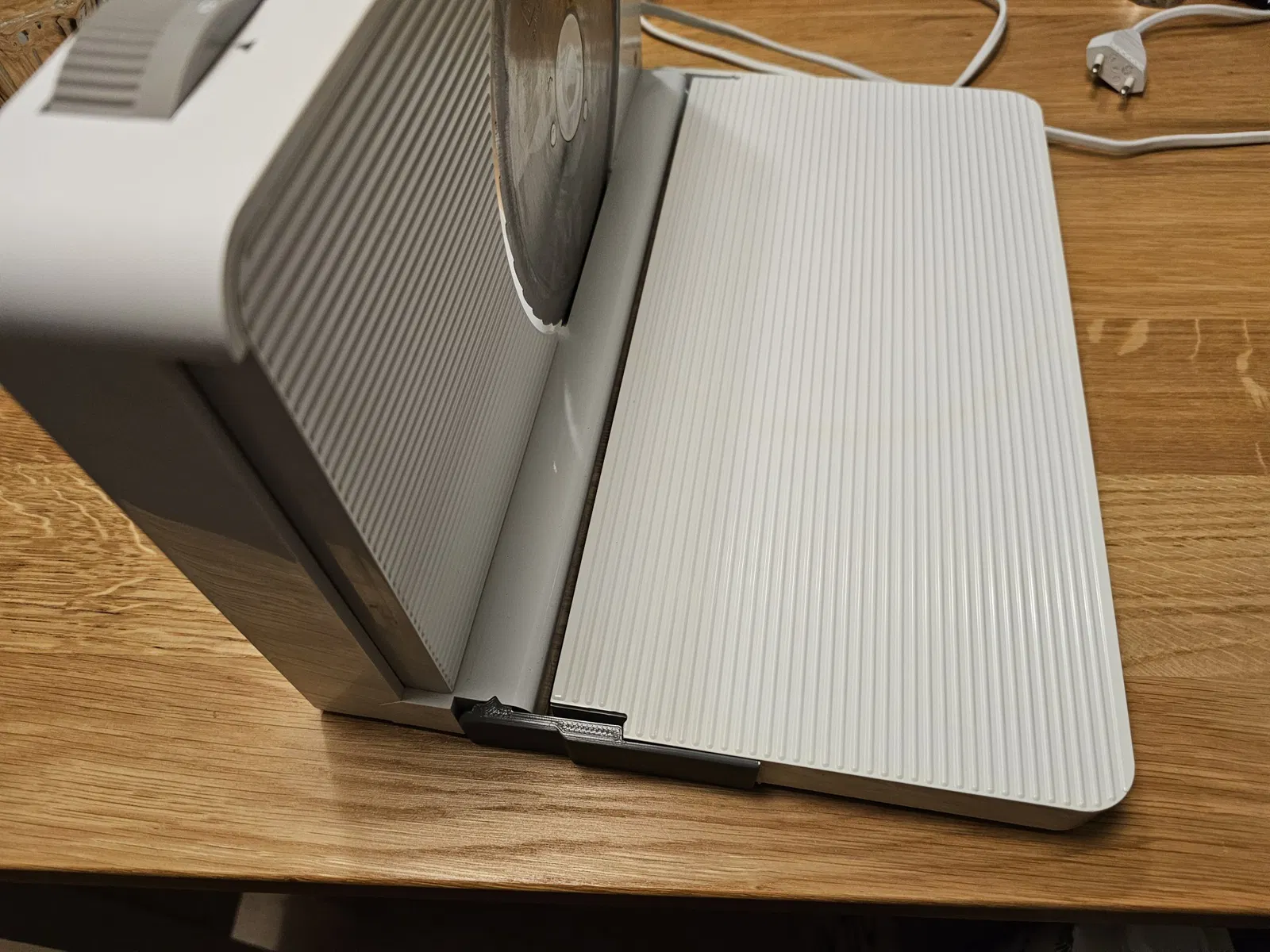 Tui có cái máy AEG USR 103 "Universal Slicer" cũ, bị gãy mất một cái chân "snap-on" kết nối. Mô hình này sẽ trượt từ dưới lên đế và thay thế chức năng của cái chân bị gãy. Mô hình có cả hai cái chân, nên bạn cứ gỡ bỏ cái không cần thiết khỏi build plate nếu không muốn xài nha.