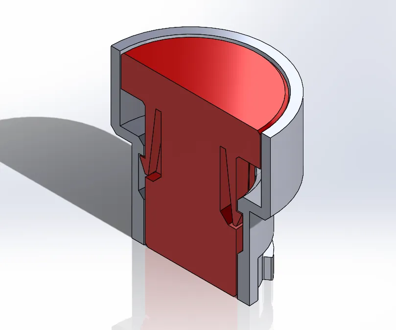 Để lắp ráp, nhấn piston vào đế. Thiết kế này không cho phép tháo rời sau khi đã lắp.