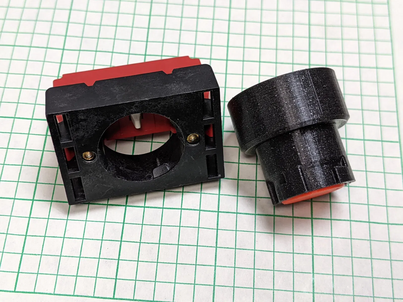 Tui tìm được một cái khung và tiếp điểm module Lovato series LM2T 22mm, nhưng lại thiếu cái nút nhấn (pushbutton actuator). Dòng này đã ngừng sản xuất nên không mua được nữa. Mẫu này là một cái thay thế đơn giản cho nút nhấn (xem 8LM2TB102). Lò xo trả về được cung cấp bởi tiếp điểm.