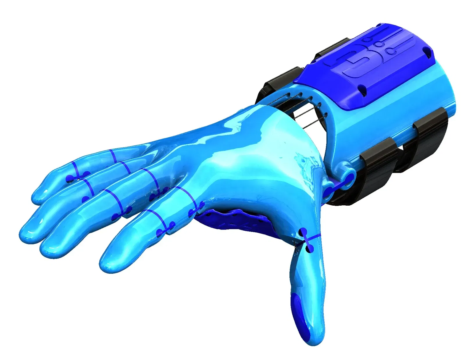 Miếng đệm ngón tay bằng Silicone đúc Sử dụng khuôn in 3D có thể điều chỉnh kích thước, miếng đệm ngón tay bằng silicone có độ bám cao cho phép các ngón tay nắm các vật thể tốt hơn. Điều này cũng loại bỏ nhu cầu sử dụng các sản phẩm tiêu dùng như miếng đệm ngón tay Lee Tippi Micro-Gel, vốn khó tìm, đắt tiền và chỉ giới hạn ở một vài kích cỡ.