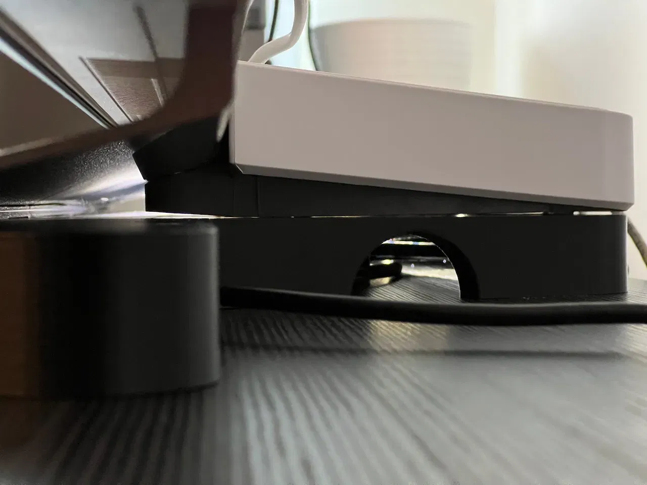 Đây là một giá đỡ và nhà tổ chức cáp cho TV LG OLED C1 65 "(hoặc 55"). Nó nâng TV cao hơn 3 cm trên bàn.