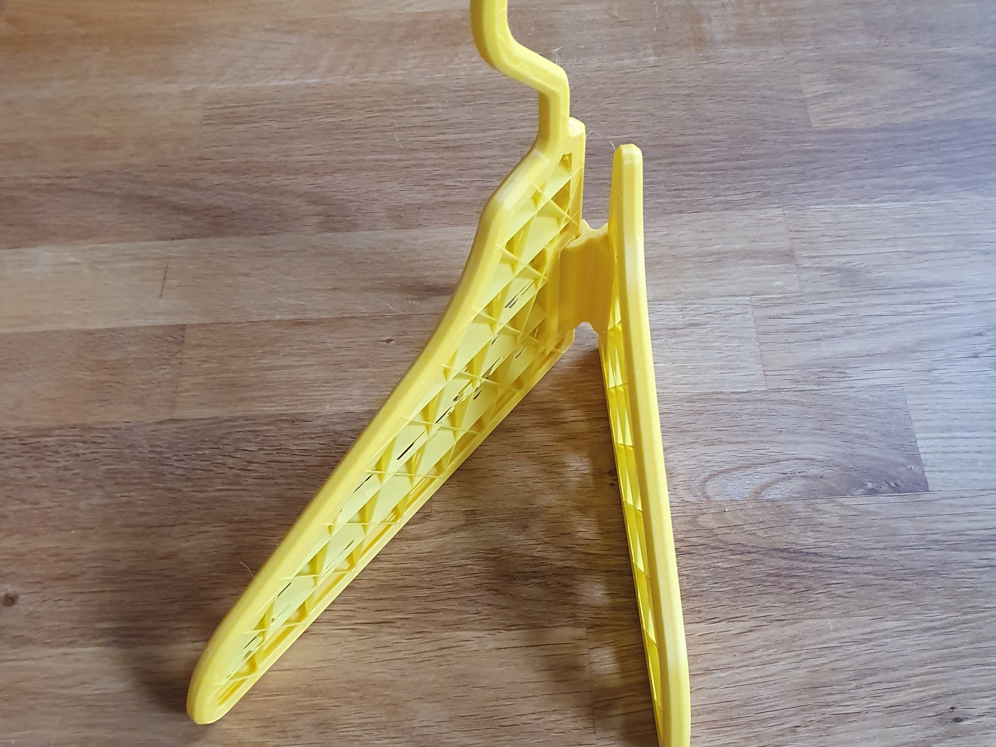 Simone Giertz had this Idea of a Foldable Coat hanger. I was not convinced that this Idea is good so I modeled simplified version of this thing and tested it.