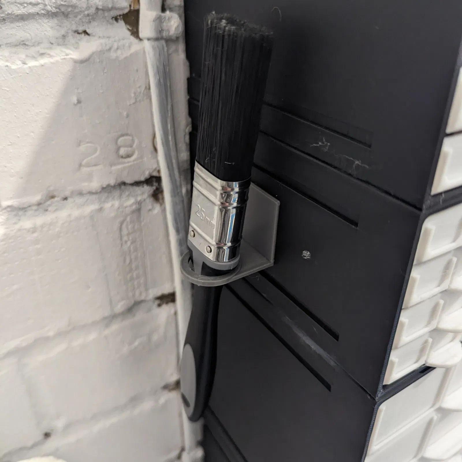 Scaled the x and y axis to hold a 25mm paint brush to glue next to the area that I use to clean up parts and other components.