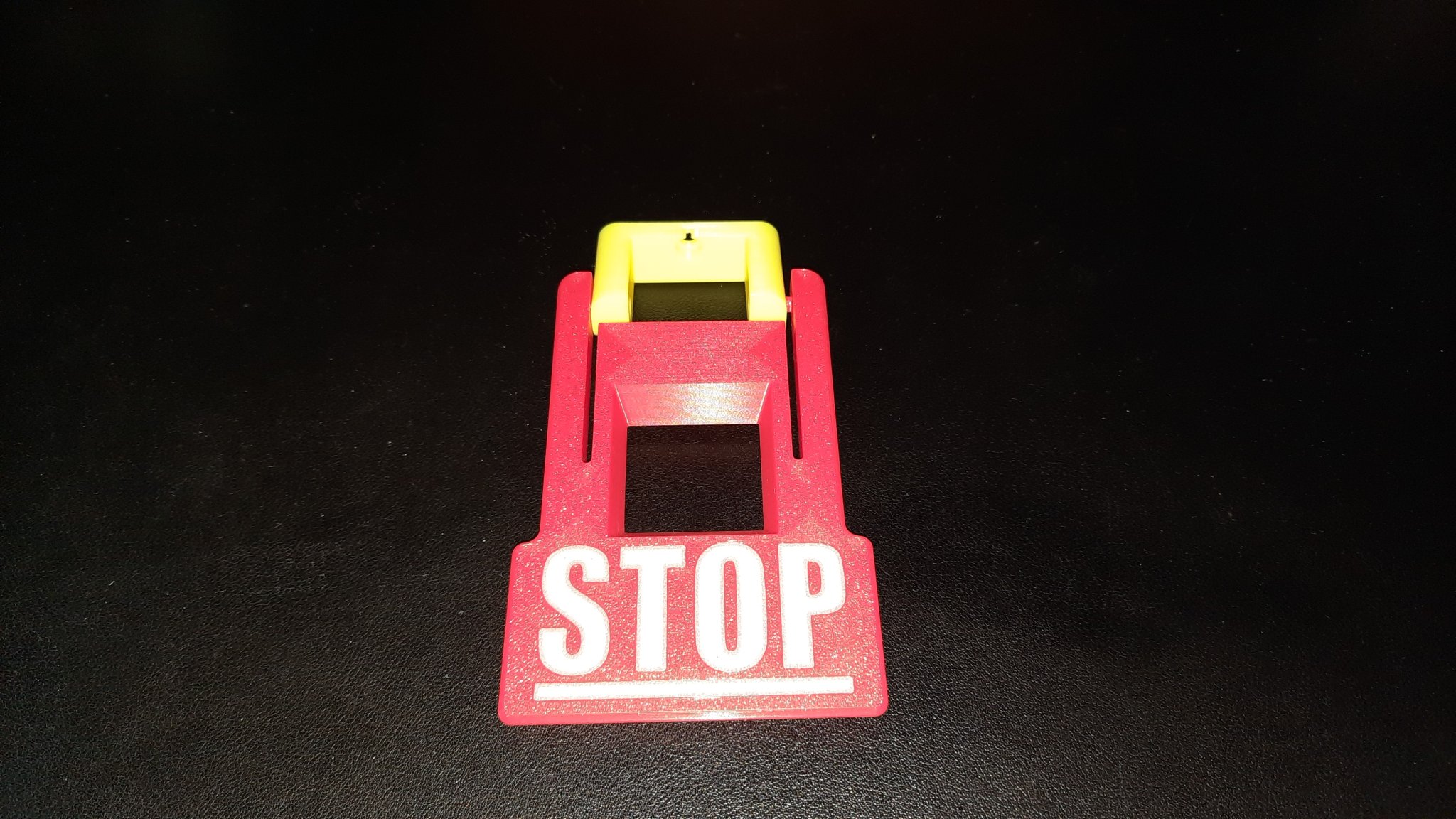 I later learned about the Z-hop technique for tricking the printer into making two-colour prints, and often thought of re-printing it with the “STOP” legend printed in white. But I never got around to it.