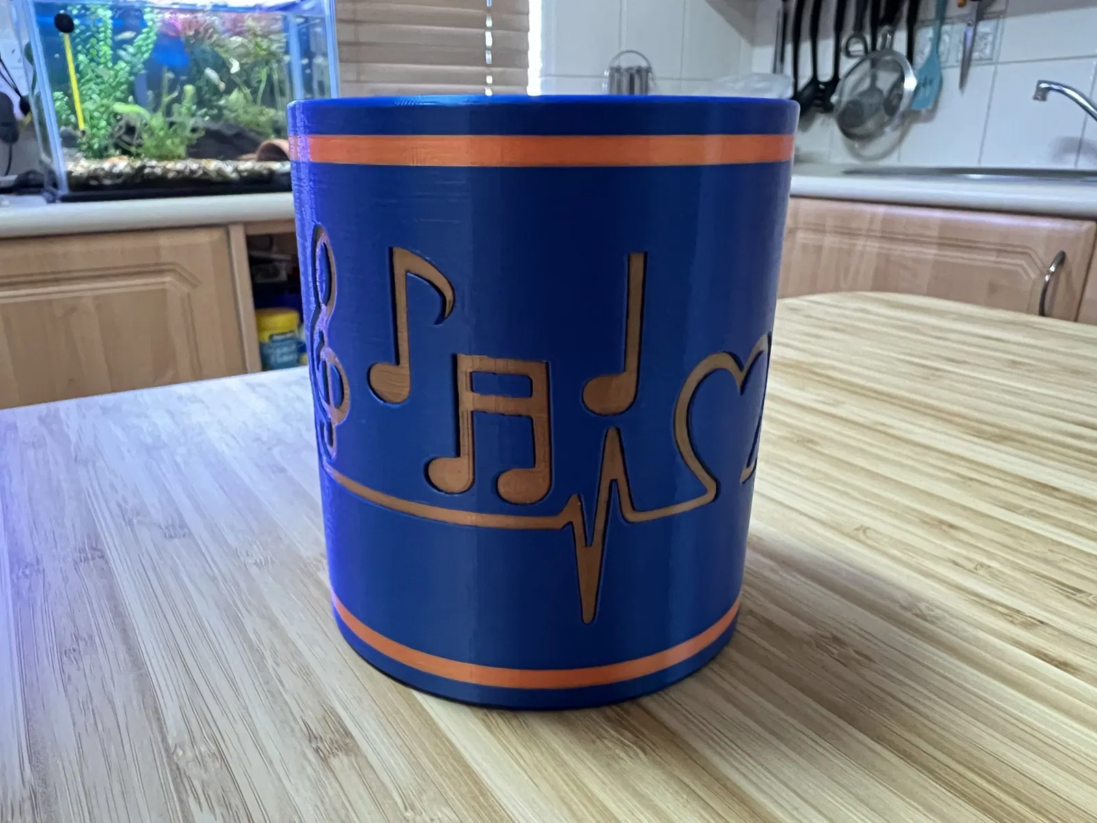 Ly "Nhịp Tim Âm Nhạc" độc đáo, có thể dùng làm cốc cắm bút, để bàn. Bản thiết kế có cả tùy chọn cho máy in MMU và phiên bản đơn sắc.