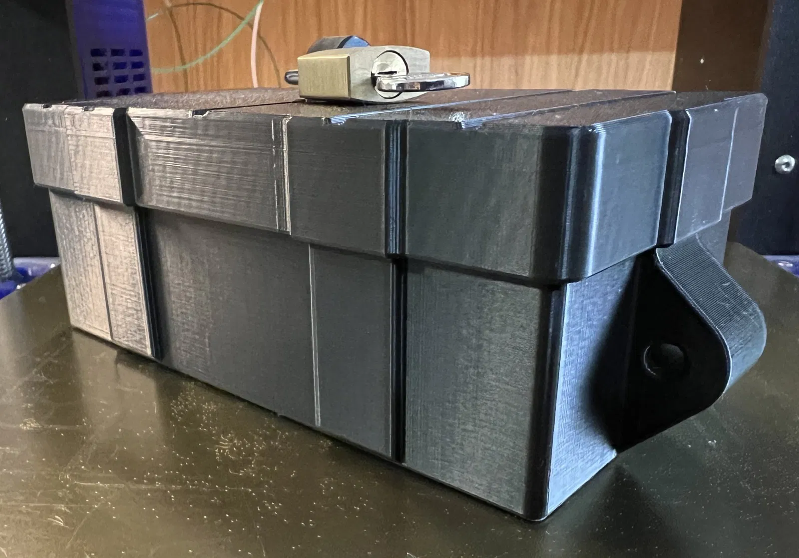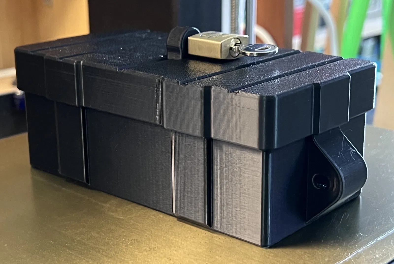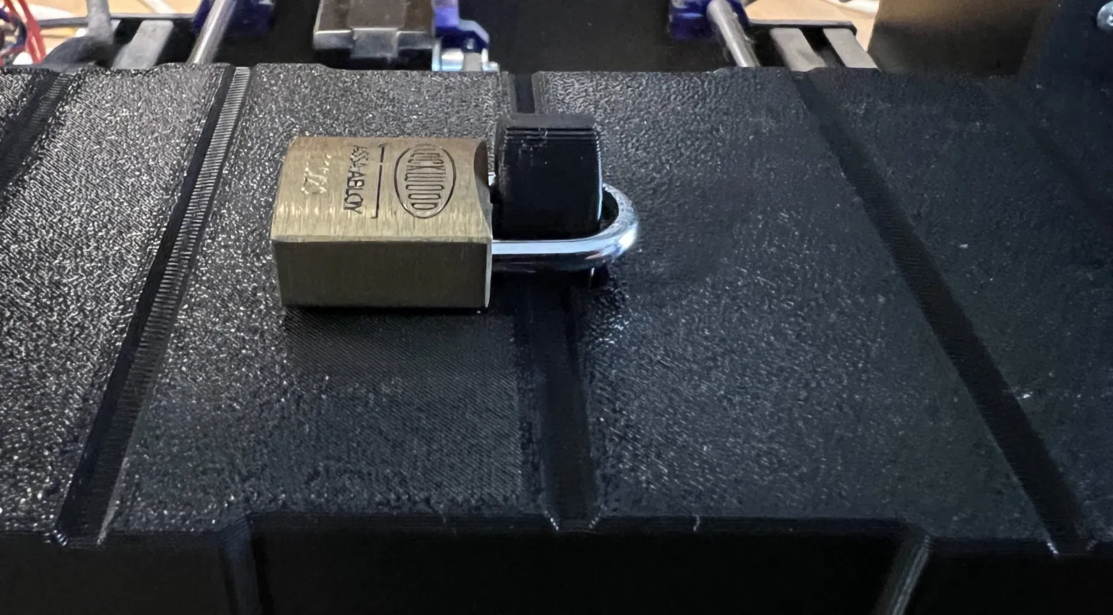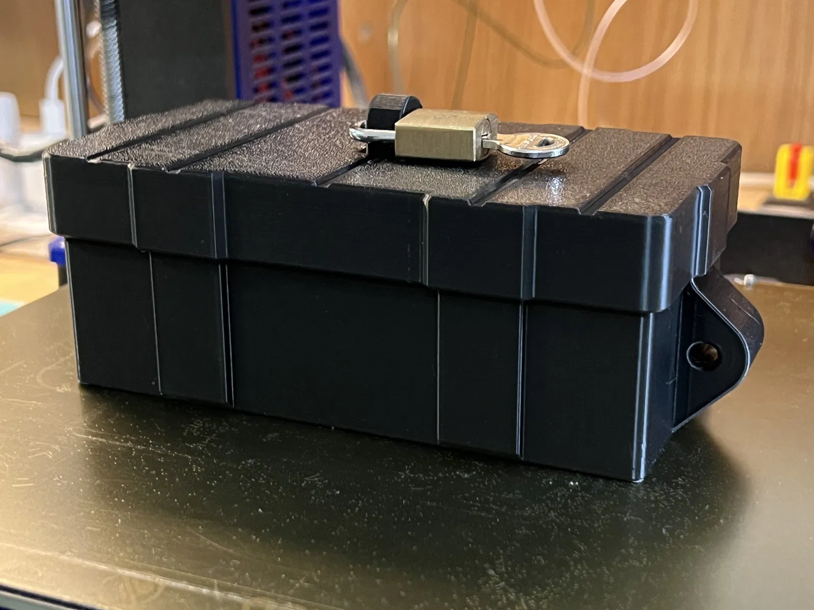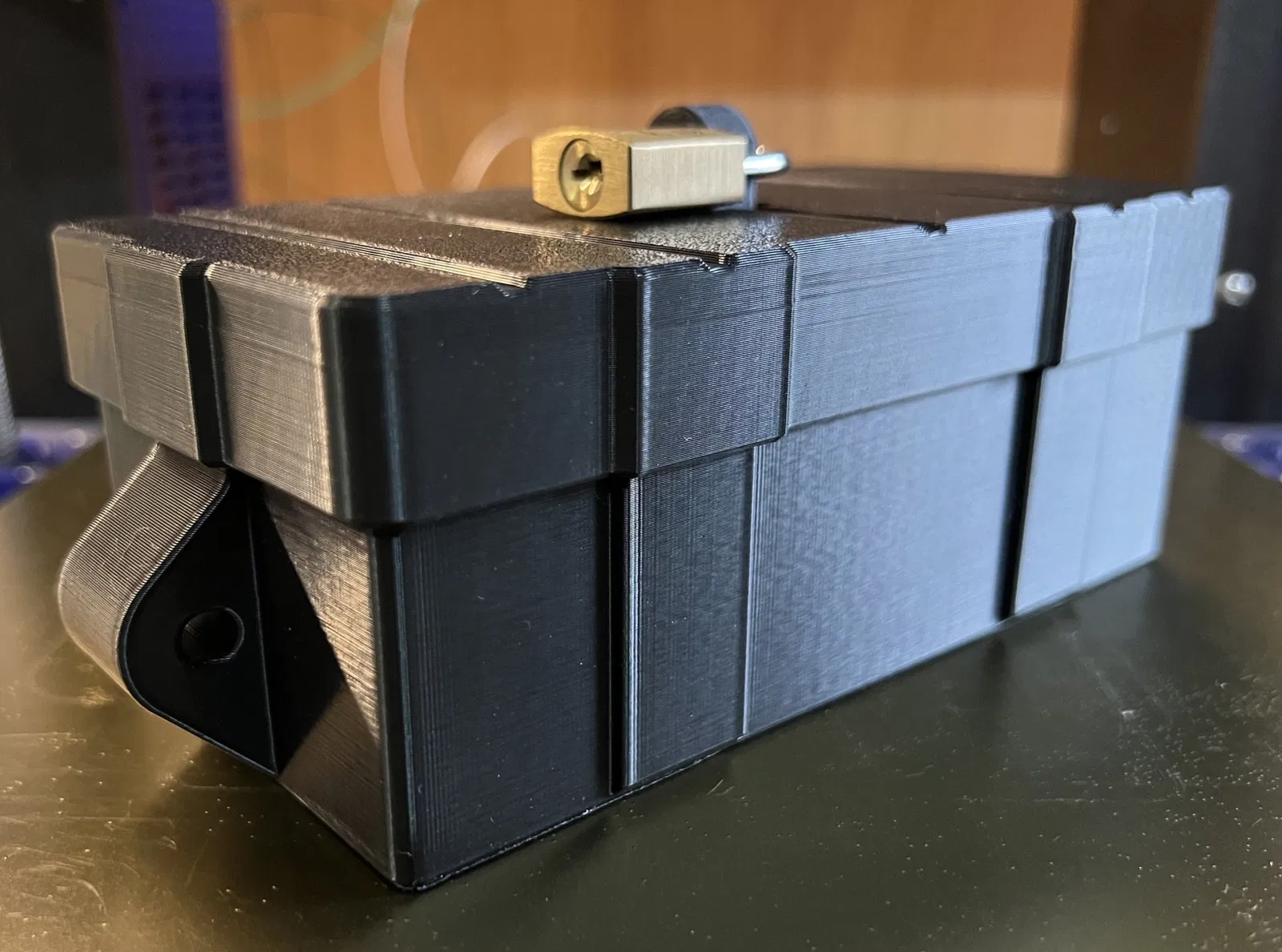 Hộp khóa chắc chắn. Bạn có thể khóa hộp bằng ổ khóa riêng hoặc cố định vào vật khác bằng dây cáp thép không gỉ. Lỗ trên 5mm, lỗ bên 6mm. Không cần hỗ trợ, in ấn vui vẻ!