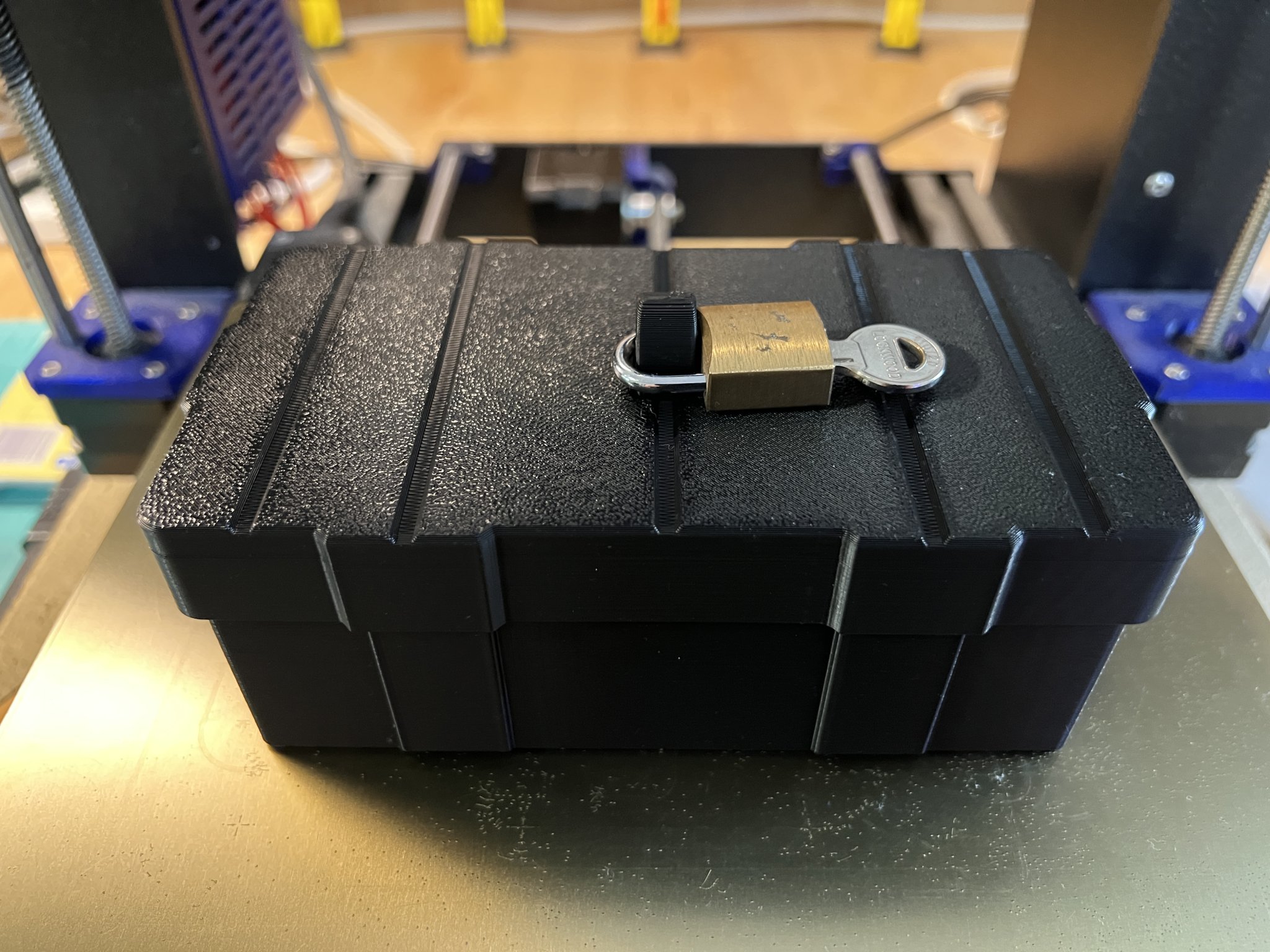 Hộp khóa chắc chắn. Bạn có thể khóa hộp bằng ổ khóa riêng hoặc cố định vào vật khác bằng dây cáp thép không gỉ. Lỗ trên 5mm, lỗ bên 6mm. Không cần hỗ trợ, in ấn vui vẻ!