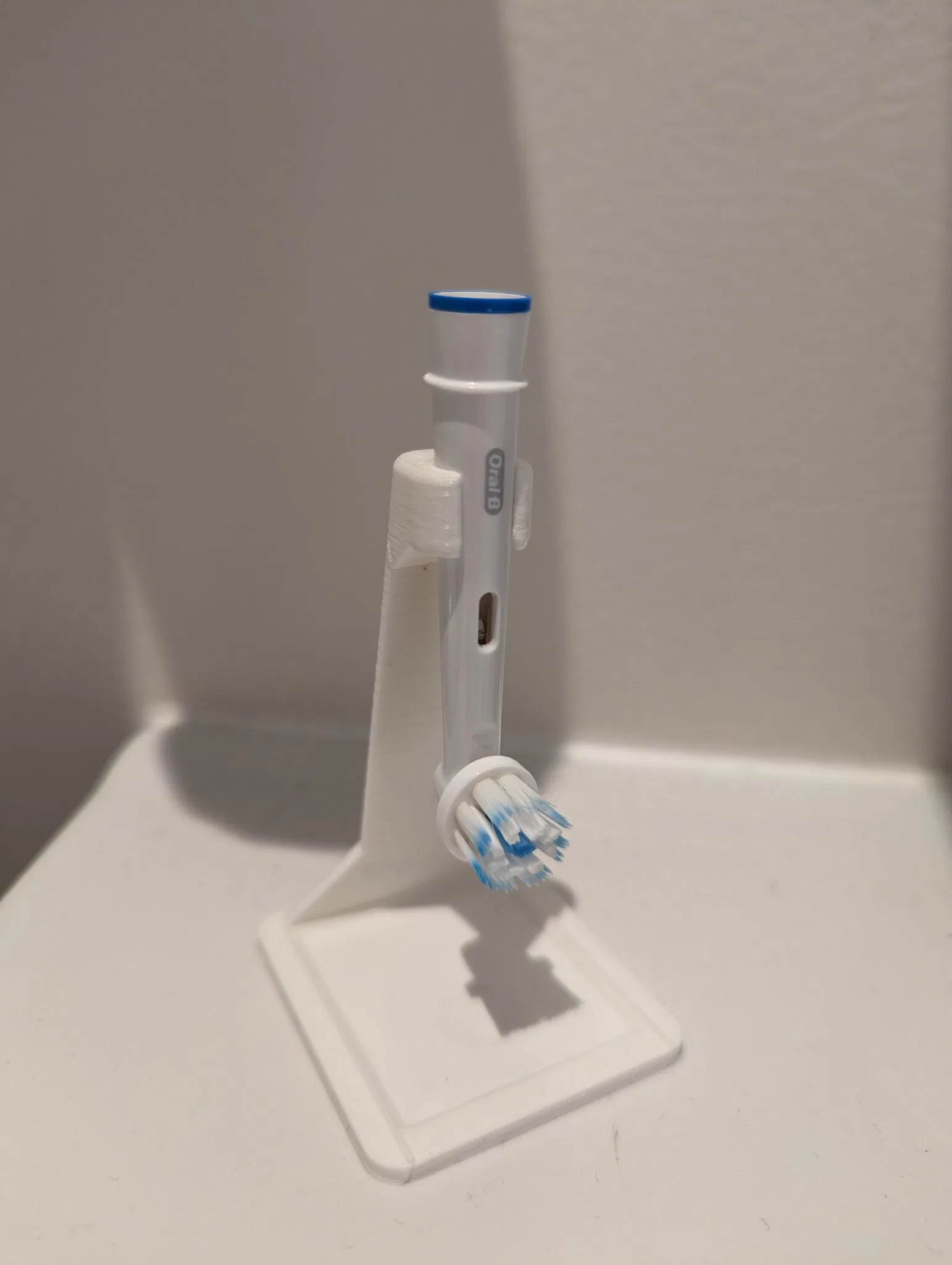 Small head stand for standard electric toothbrush heads. Since the brushes tend to drip some leftover toothpaste, I included a small dripping tray to catch this.
