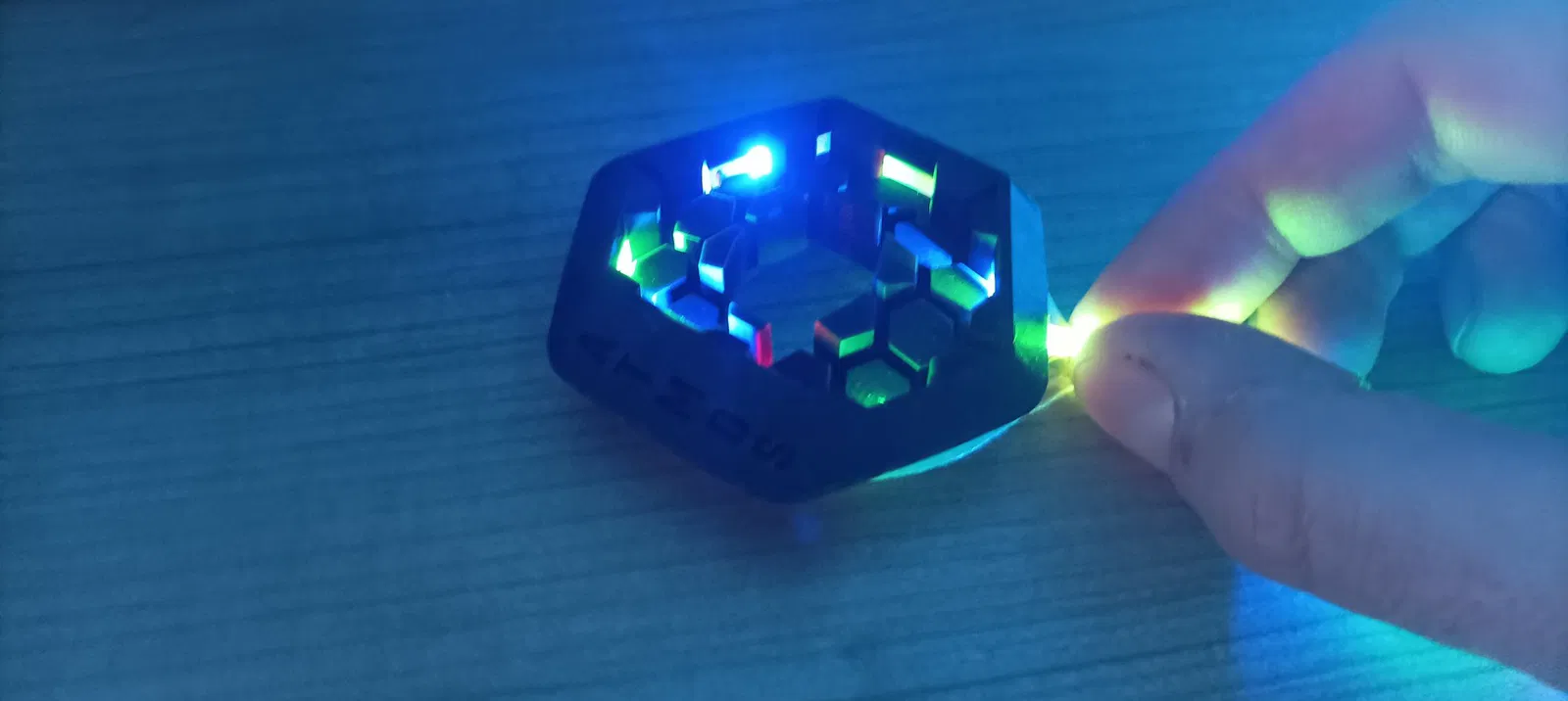 Tui cũng dùng họa tiết lục giác cho phần kết nối giữa hai nửa trên và dưới, để đủ ánh sáng đi vào trung tâm và đủ độ cứng cho cấu trúc. Theo chiều dọc, tui kéo dài các hình lục giác ra nhiều độ cao khác nhau, sao cho các trụ ở ngoài rìa cho phép đủ ánh sáng đi qua các trụ gần trung tâm. Sáu trụ ở logo phản chiếu nhiều ánh sáng nhất từ chính logo, để làm nó tỏa sáng và tạo hiệu ứng ánh sáng đẹp từ trong ra ngoài. Tất cả các hình lục giác đều nghiêng 20° so với sáu hướng của hình lục giác ngoài, để duy trì đặc tính quang học này và tạo ra sự khúc xạ đẹp của ánh sáng tản nhiệt đi vào.