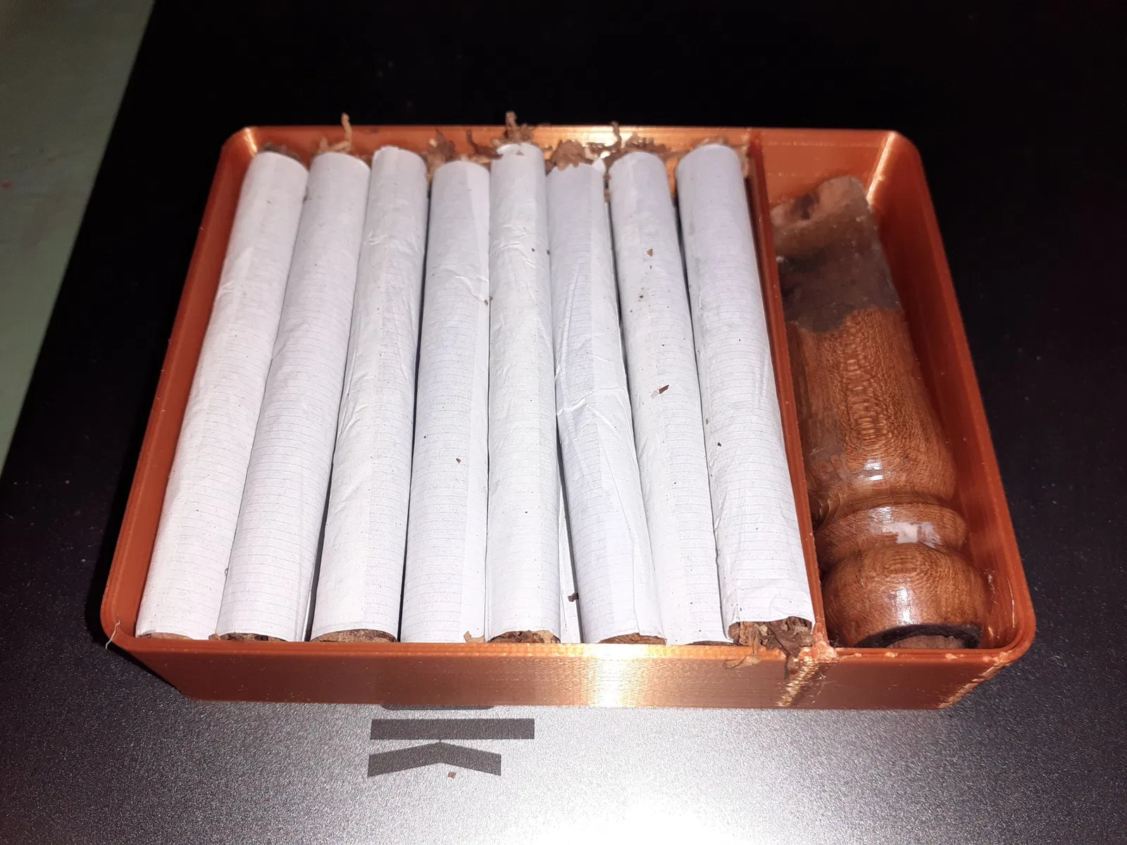 Hộp đựng thuốc lá và đầu lọc này có in logo cực chất trên nắp, giúp bảo quản thuốc lá của bạn một cách gọn gàng và phong cách. Rất tiện lợi để mang theo bên mình.