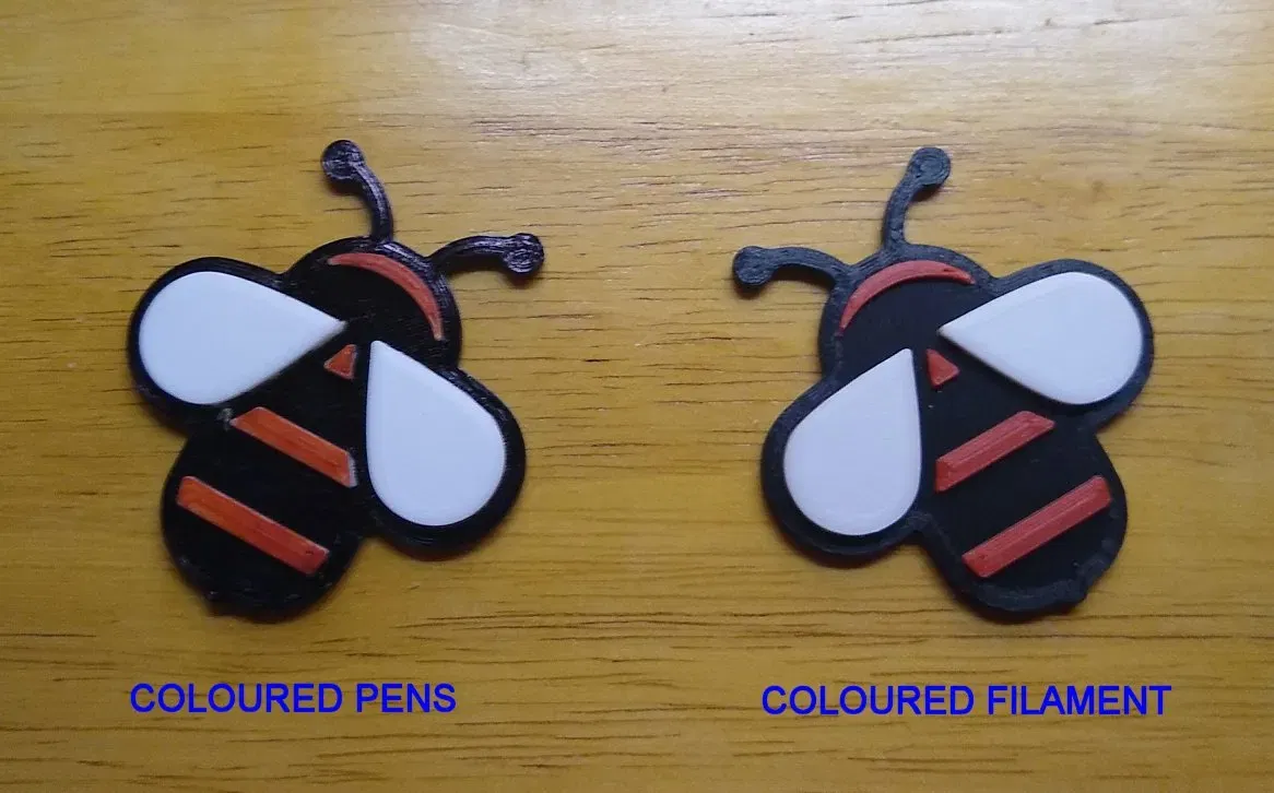 Tui tìm thấy con ong được thiết kế đẹp mắt này trên Thingiverse ngay sau khi mua máy in 3D đầu tiên. Lúc đó, tui chỉ có sợi nhựa màu trắng nên phải tô màu cho các chi tiết bằng bút Stabilo loại permanent! Nó ra khá ổn nhưng tui không chắc nó có bền ngoài trời được bao lâu - màu có bị phai hay lem không?
