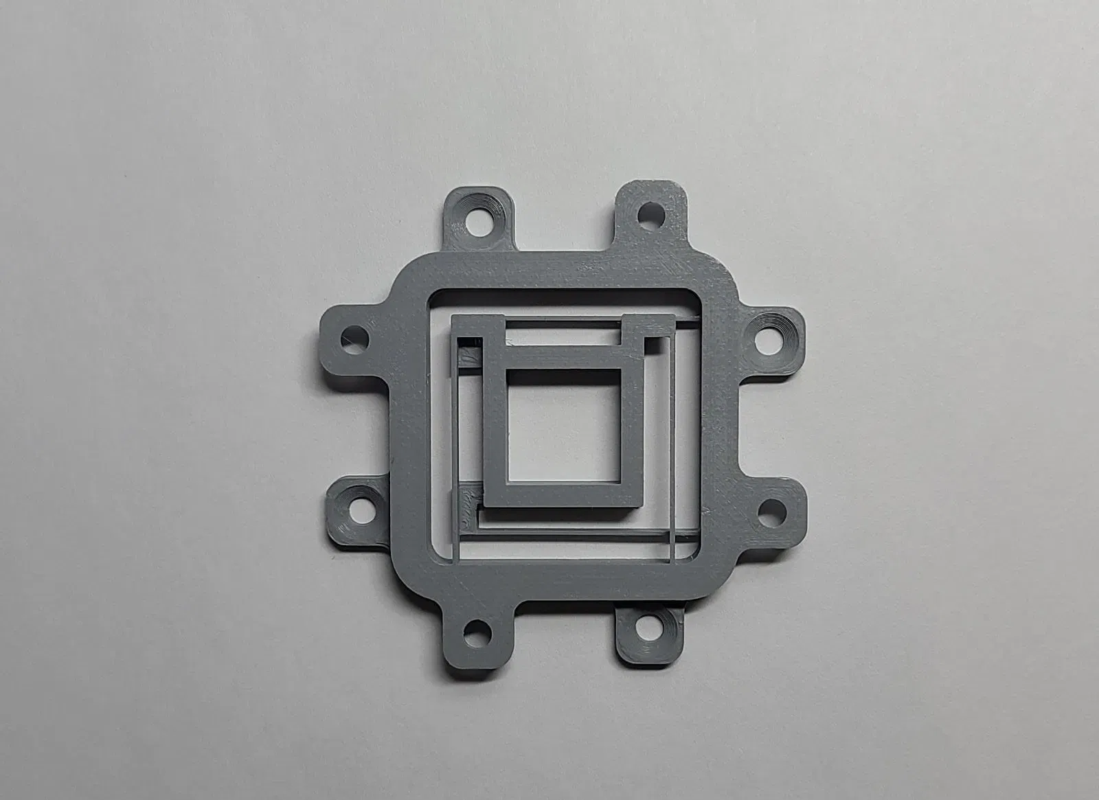 Thiết bị bù trừ XY kiểu cơ cấu đàn hồi với hành trình bù trừ 4 mm, lý tưởng cho sinh viên thử nghiệm robot. Không cần bảo trì, dễ in với PLA. Kích thước 70x70x6.1mm, hành trình bù trừ 4mm mỗi trục. Lắp ráp đơn giản bằng cách lồng các bộ phận vào nhau.